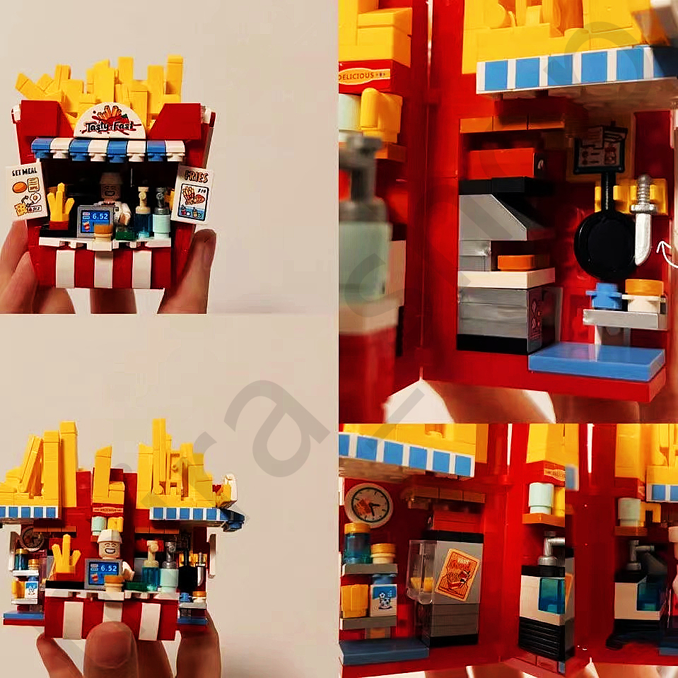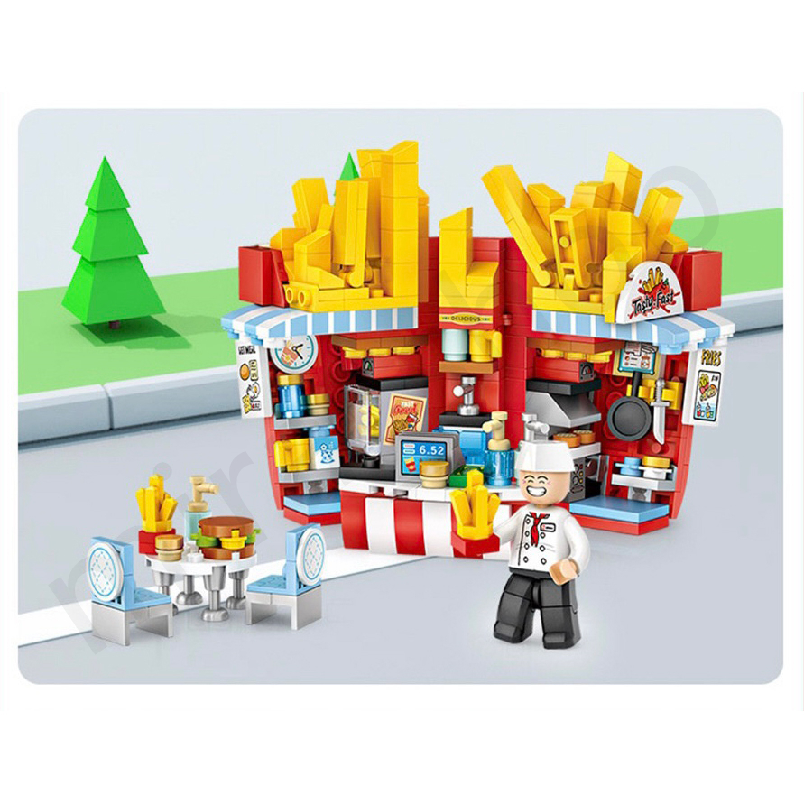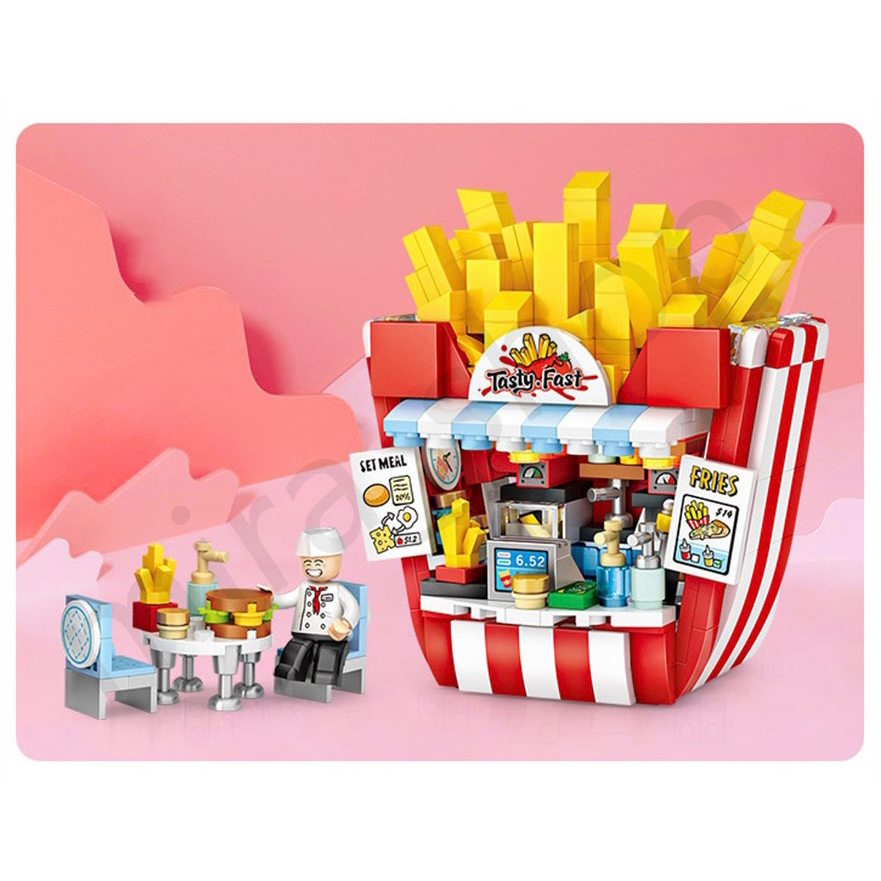 フライドポテト専門店、ガーデンテーブルセットと人形を付け、セットを収集にも最適です(*^^*)♪♪お子様のお誕生日や入園・入学のお祝いなどのプレゼントにもお勧めの素敵なおもちゃです。 ミニブロック463ピース 楽しい時間を過ごせます!(^^)!