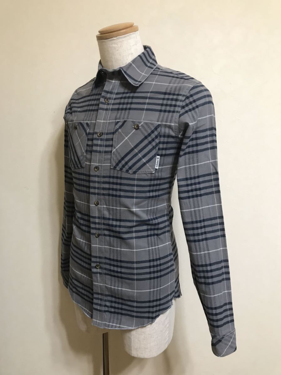 *サイズXS 長袖 チェック柄 グレー 型番:G90735 綿52% ポリエステル48%