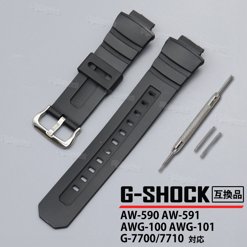 Gショック ラバーベルト 16mm AW590 AW591 AWG100 AWG101 G7700/7710 腕時計 バンド 代用 メンズ 部品 黒 予備 交換 パーツ 新品 互換品