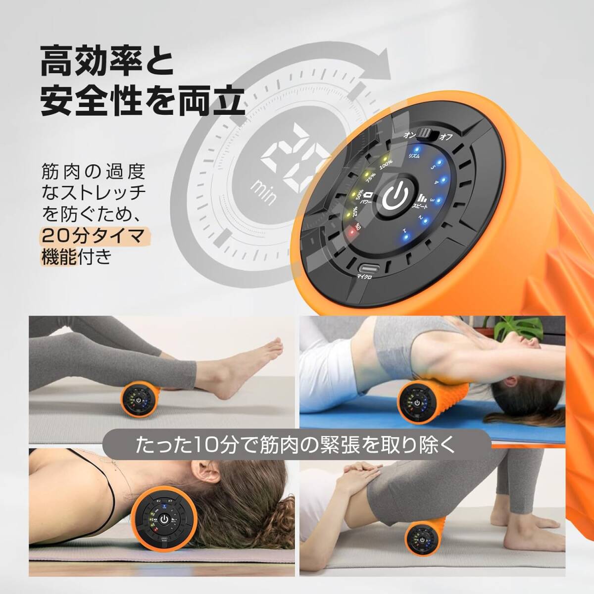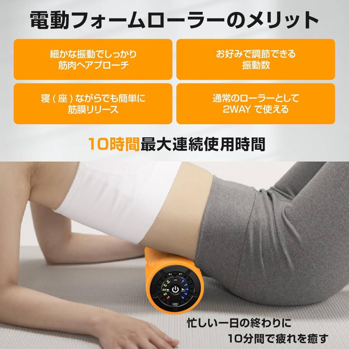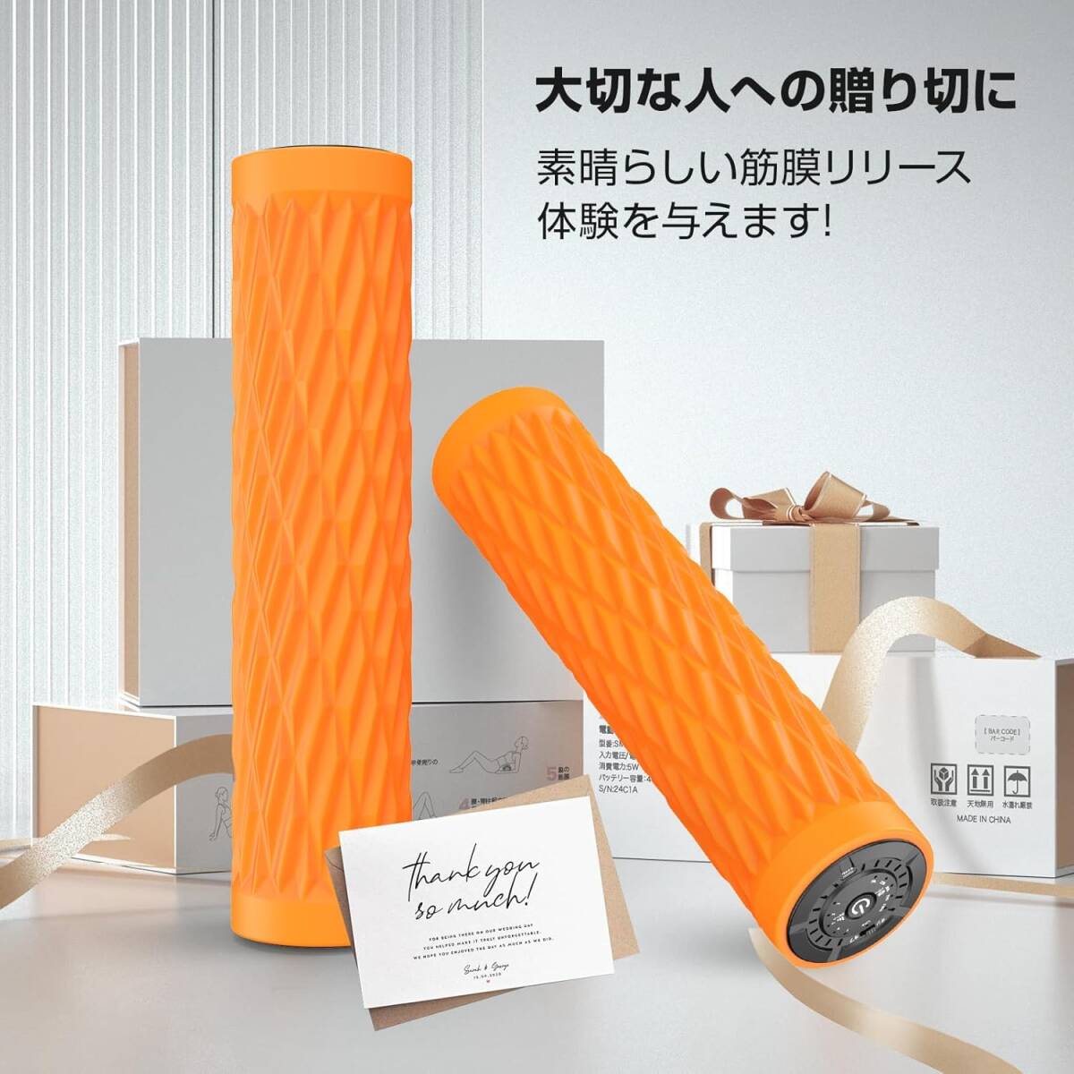スリムオレンジ色 フォームローラー 電動 筋膜リリース ローラー 4000mAh 大容量電池 多種類の凹凸 パワフル振動