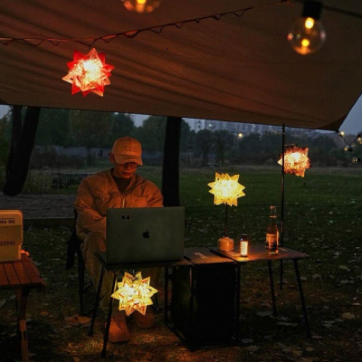 LEDライトにかぶせるだけで、やわらかく幻想的な光が広がり、キャンプサイトやベランピング、インテリアのアクセントとして大活躍!