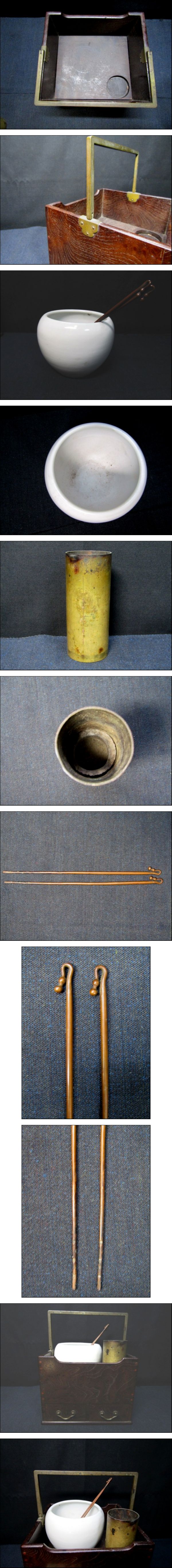 【蔵】☆時代物 茶道具 手付 煙草盆(たばこ盆-莨盆) ケヤキの古い煙草入れ箱 引き出し2個付 瓢箪枝火箸☆ 目に付く大きな割れ、キズ等はありません。 経年の汚れ等はあります。 万一 説明ちがいの場合は 画像を優先します。 写真で確認してください。 ●サイズ(外径)● 高 約 13,5㎝ 幅 約 16,5㎝ 奥 約 15,3㎝ 簡易計測にて多少の誤差はご了承下さい。 ※※商品の状態等につきましては、個人差がありますので、 状態については特に気になる箇所は記載するように心がけていますが稀に 見落としや相違がある場合がありますので画像をよくご覧になり 最終的には自己責任で画像判断して下さい※※ 画像参照 ◎◆中古品・古物・新古品・を出品しております。◆◎ 中古品での出品になりますので、中古品にご理解のある方のご購入をお願い致します。 ■状態は個人差が有ります。必ずPCにて画像確認の上、判断ください。 状態に関しましては、あくまでも個人基準にて判断しております。 主観の違いがあるかと思いますので、その点はご了承ください。 ◆目に付くキズ、割れ等は記載していますが、保管状態により、汚れ、黄ばみ、細いスレれ等、 ある場合が有りますので神経質な方はご理解の上ご入札お願い致します。◆ ◆状態につきましては、画像を良くご覧いただき、ご自身で御判断いただきますよう宜しくお願い致します。 ◆出品ページを最後までお読みいただき、ご納得の上でご入札くださいますようお願い申し上げます。 ◆タイトル等に相違がある時は画像優先とさせていただきます。 (説明不足はご容赦下さい。) ◆検品は万全ではないので、完全な状態の商品を望まれる方や状態に神経質な方、 中古や古い物に理解の無い方の入札は固くお断り申し上げます。 ◆載せている画像が全てとなっております、画像の確認を宜しくお願い致します。 ※写真と現物とでは撮影環境により多少色合いが異なる場合がございます。 ご理解の上でのご入札をお願いします。 ■尚、入札後・落札後の質問等は、お受け出来ません。(入札前にお願いします。) 画像、説明で分かる事は回答しません。 ■◎オークションは現物の状態を、現物を確認できないお取引です。 画像をよくご覧になって判断いただき、入札はよくお考えになった上で慎重にお願いいたします。 ■◎誤入札の取り消し・削除は致しません。 ■都合によりやむを得ず(入札の無い出品中)の商品を取り消しすることがございます。 ご了承くださいますようお願い申し上げます。 ※ 重事項 ※ 最近ひやかしや、いたずら入札が発生している為、新規、評価の悪い方の入札は取り消しさせて頂きます。 新規のIDの方による入札、又は最近一カ月の評価の悪い方はは削除させて頂きますので御了承願います。 御入札の意思が在るのならば質問欄より御知らせ下さいませ。 最近、落札しても連絡無しが2件発生しました。 購入の意思が無いのであれば入札しないでください。非常に迷惑しますので。 ・古物品の特性を理解された上で良く写真を観てから御入札を御願い致します。 ◆◇よろしくお願い致します。◆◇ ◎ご理解頂ける方のみオークションにご参加ください。 | |||