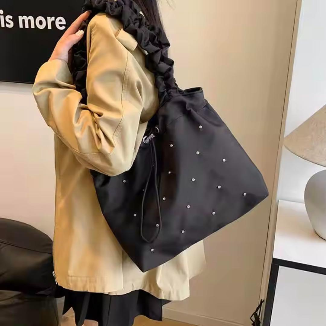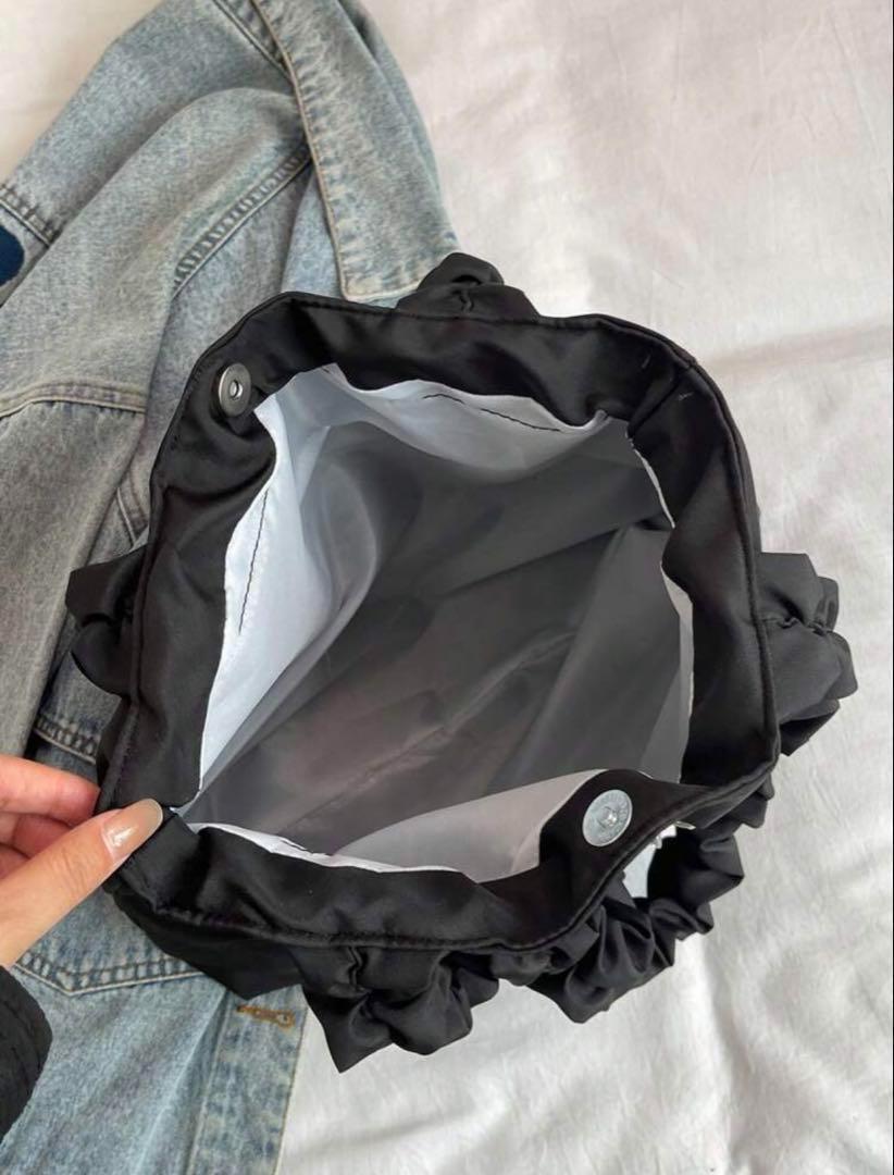 ◆ストラップは肩がけOKのふんわりフリル仕様