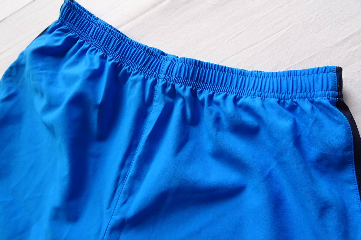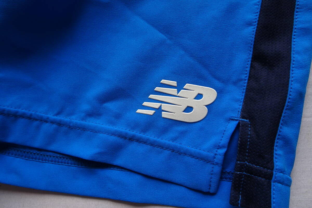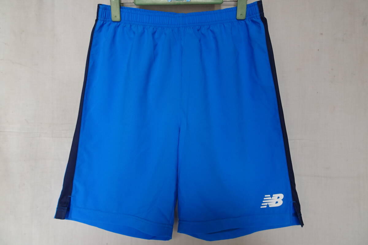 new balance/ニューバランス/ショートパンツ/薄手/速乾性/ひざ上丈/脇紺ライン切替/裾サイドスリット/スポーツ/青/ブルー/Lサイズ(10/9R7)