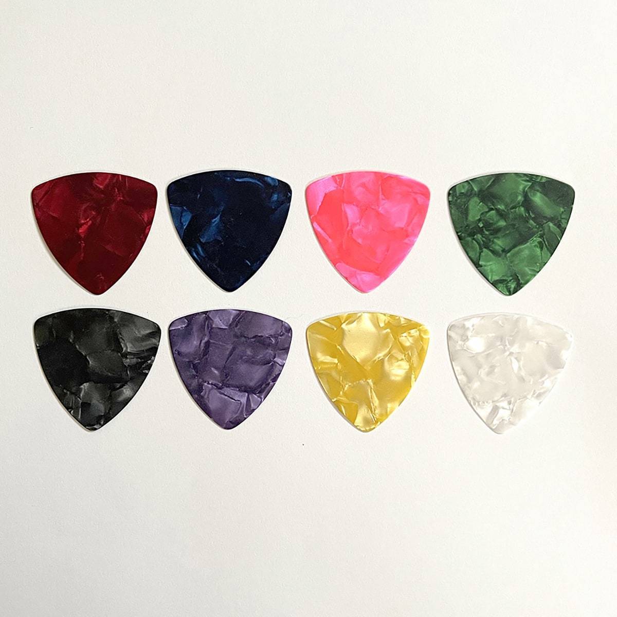 3つの角で弾けるから3倍長持ちのトライアングル形状のギターピックです。