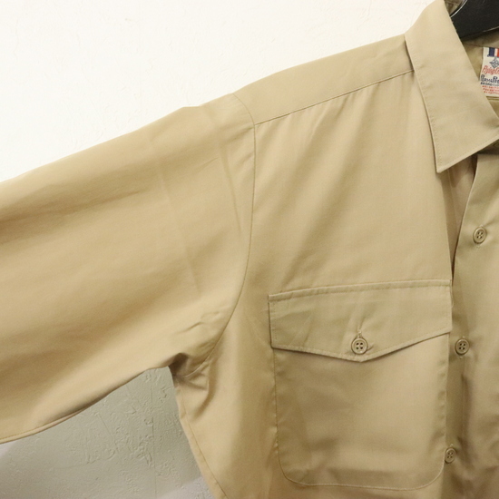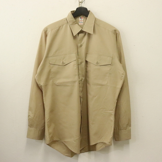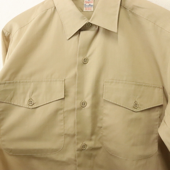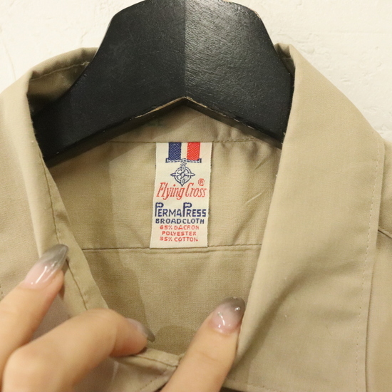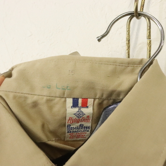 n981 70sビンテージ Flying Cross 長袖シャツ■1970年代製 表記15サイズ ベージュ 無地 アメカジ ストリート 古着 激安 古着卸 80s 90s