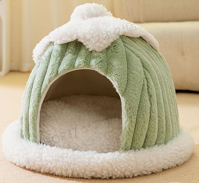 猫 犬 ベッド ふわふわ 暖か カボチャ形 キャット ペット用品 ペットハウス 滑り止め クッション 柔らかい 秋冬 グリーン Lサイズ