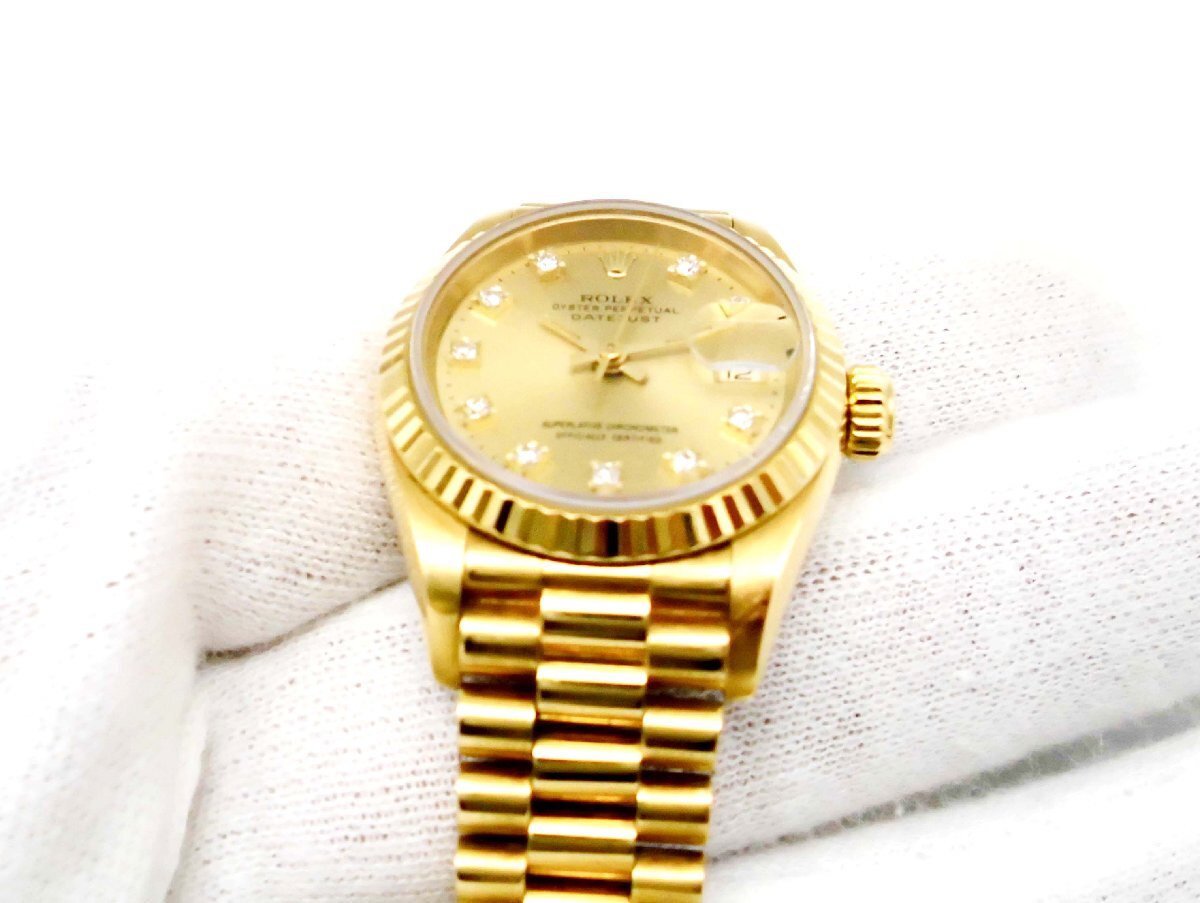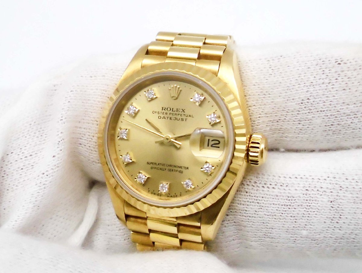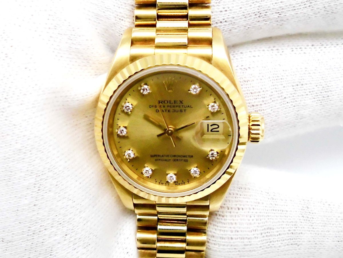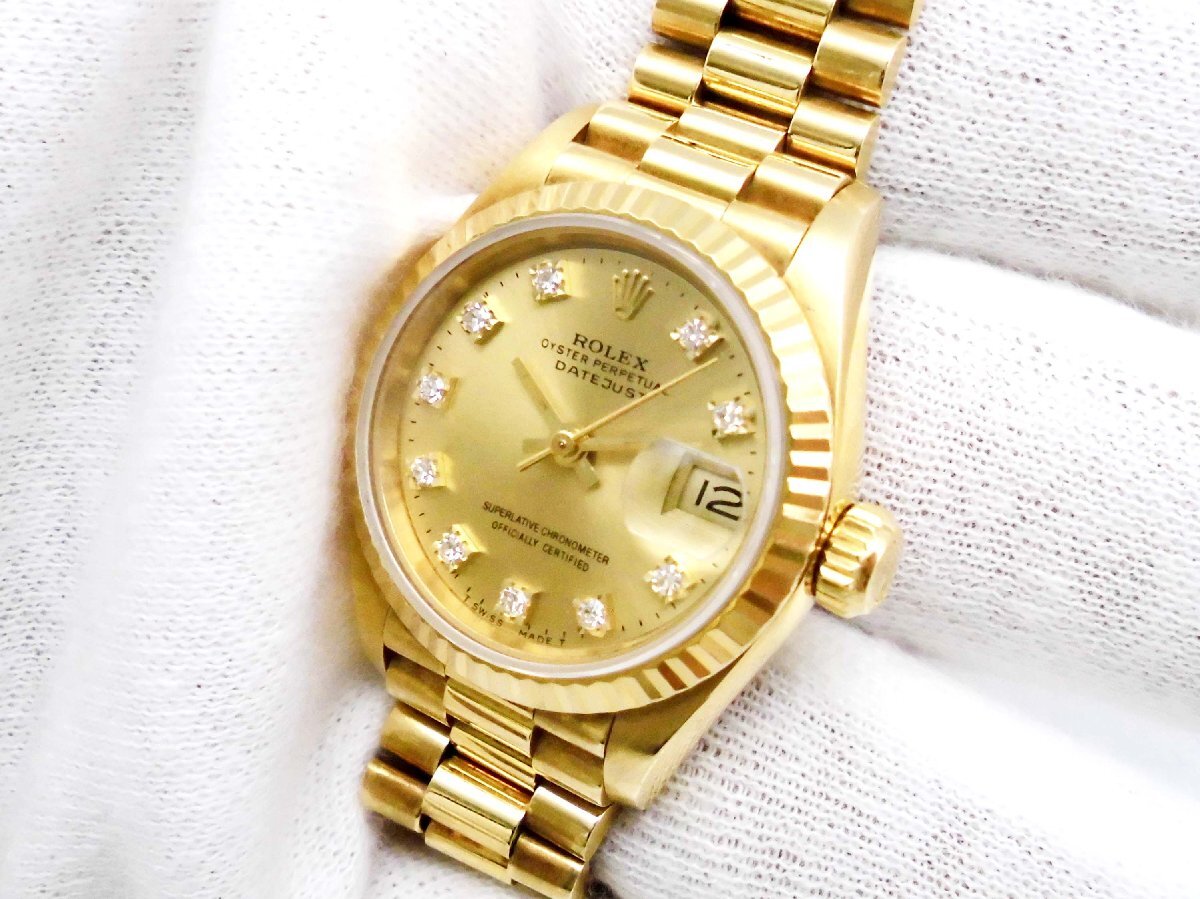 商品説明ROLEX ロレックス デイトジャスト 69178G L番 レディース 腕時計 K18YG 10Pダイヤ ゴールド文字盤 自動巻き 【動作品】 です。