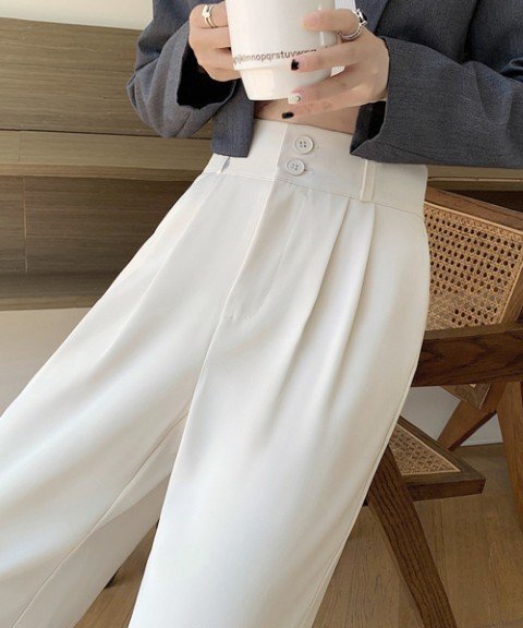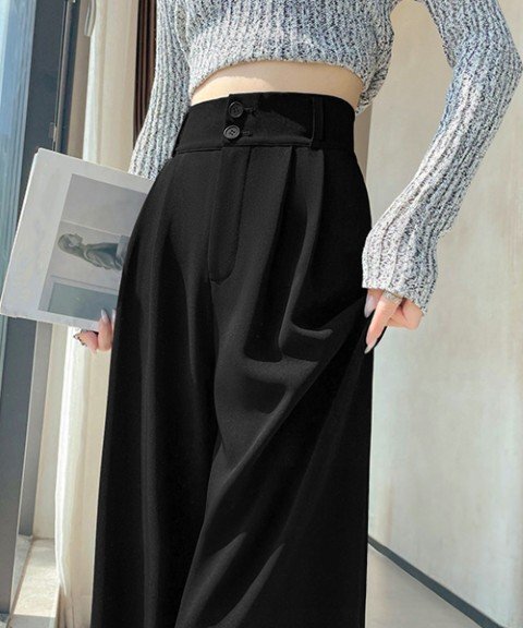 ダブルボタンがアクセントになり、バックゴム仕様でラクな穿き心地です。