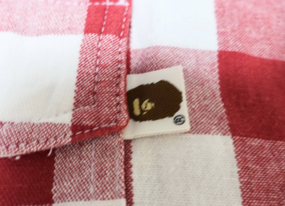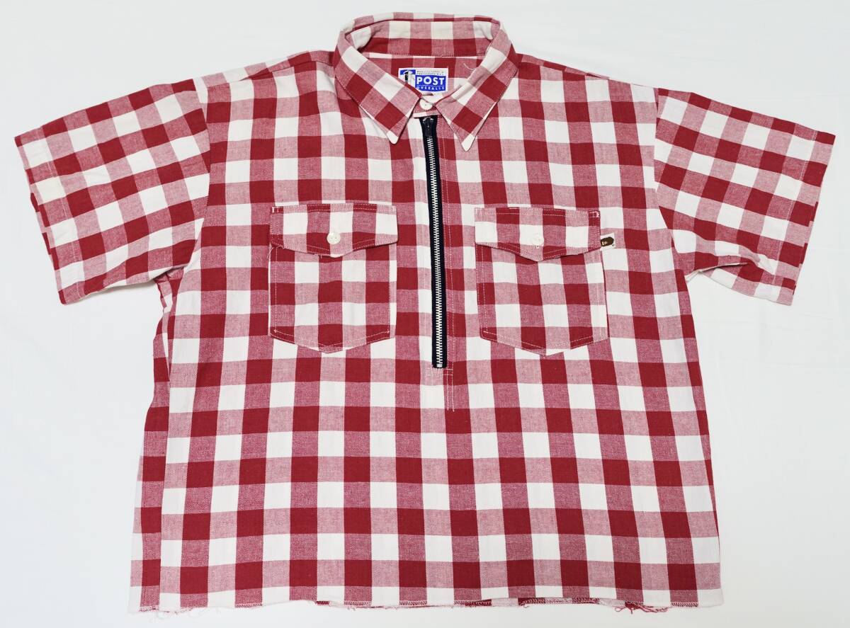 希少 レア 90s ヴィンテージ 初期 Wネーム A BATHING APE × POST OVERALLS ハーフジップシャツ S 赤/白 エイプ ポストオーバーオールズ