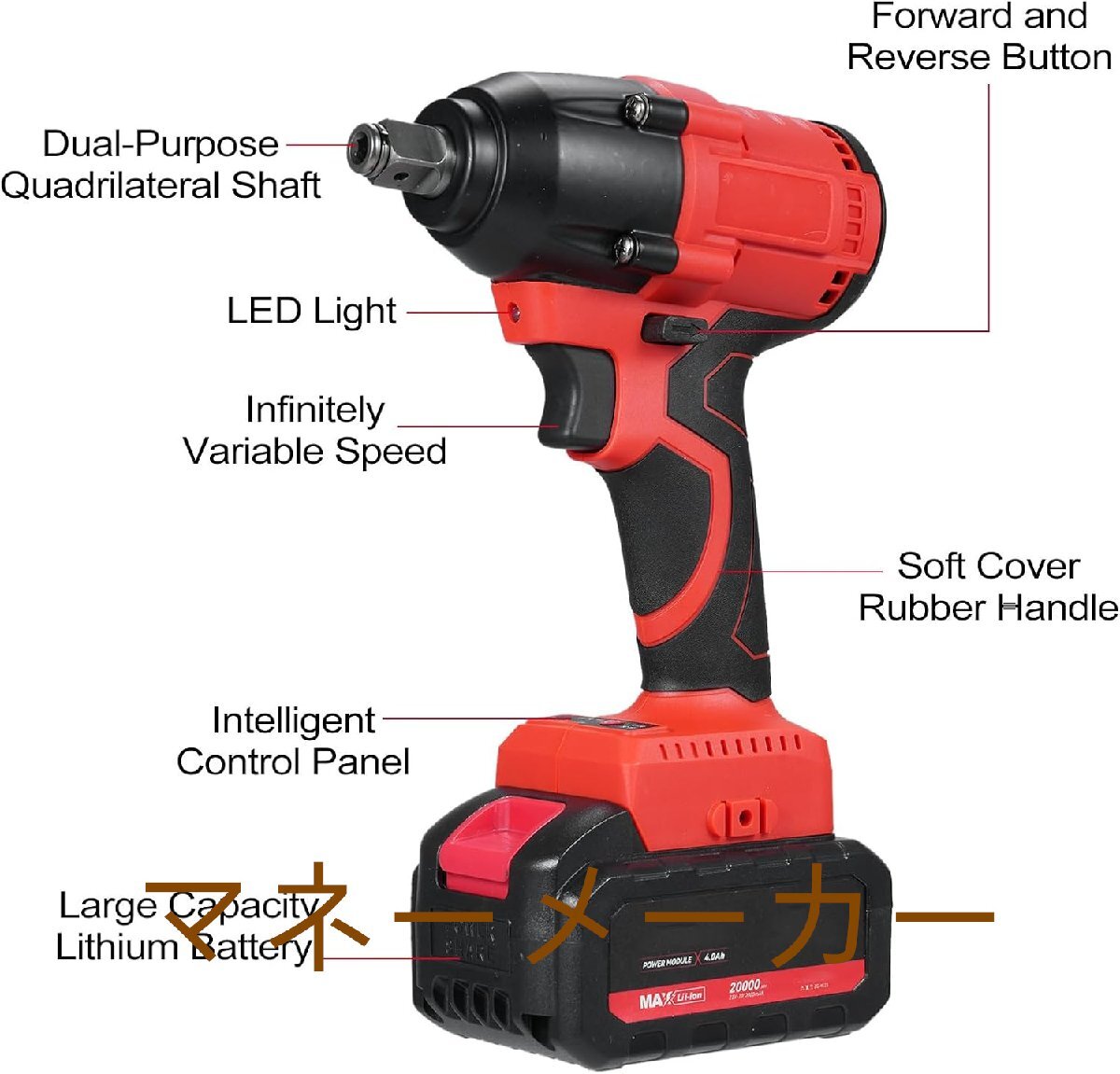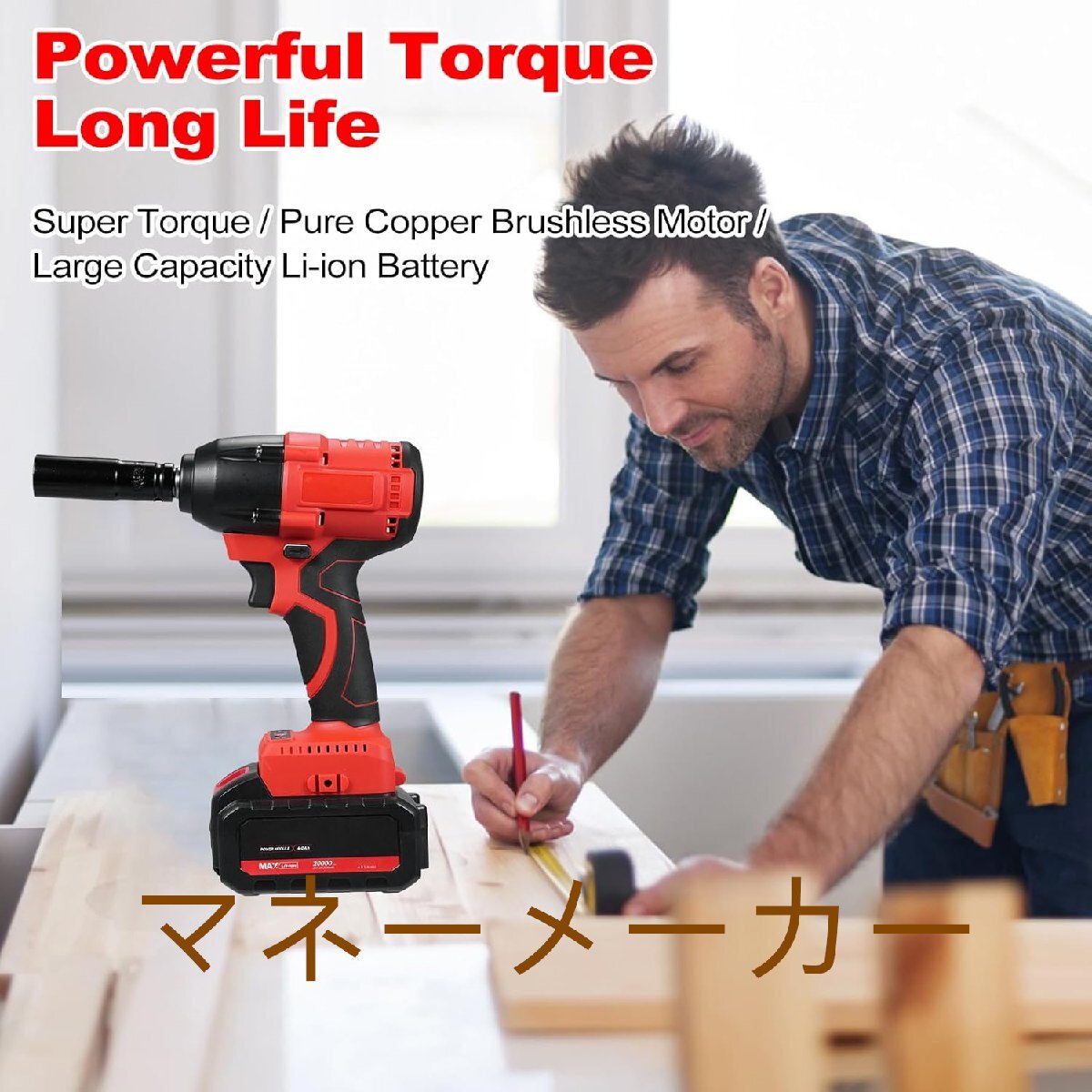 ブラシレス強力モーター: ブラシ付きモーターと比較して、ブラシレスモーターは、ノイズが少なく火花が出ず、パフォーマンスが優れ、耐久性が長いという長所があります。パワーインパクトレンチは最大 380N.m の高トルクと最大速度 2800RPM を備えており、作業中の時間と労力を節約できます。
