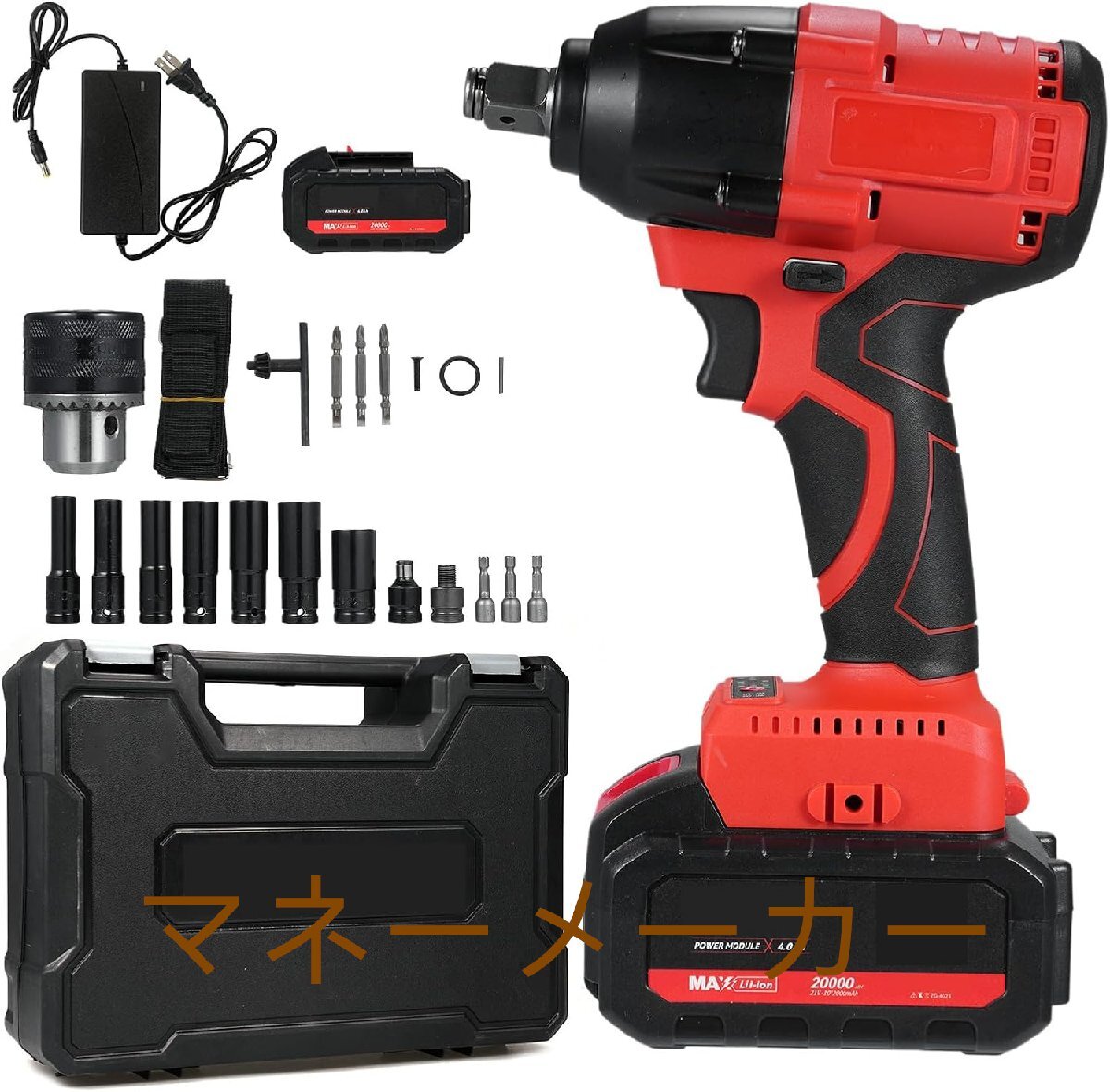 21V インパクトレンチ 最大トルク 350N.m ブラシレス 2800RPM インパクトドライバー 4.0Ah バッテリー 2個と充電器付き 無段階速度調整 正