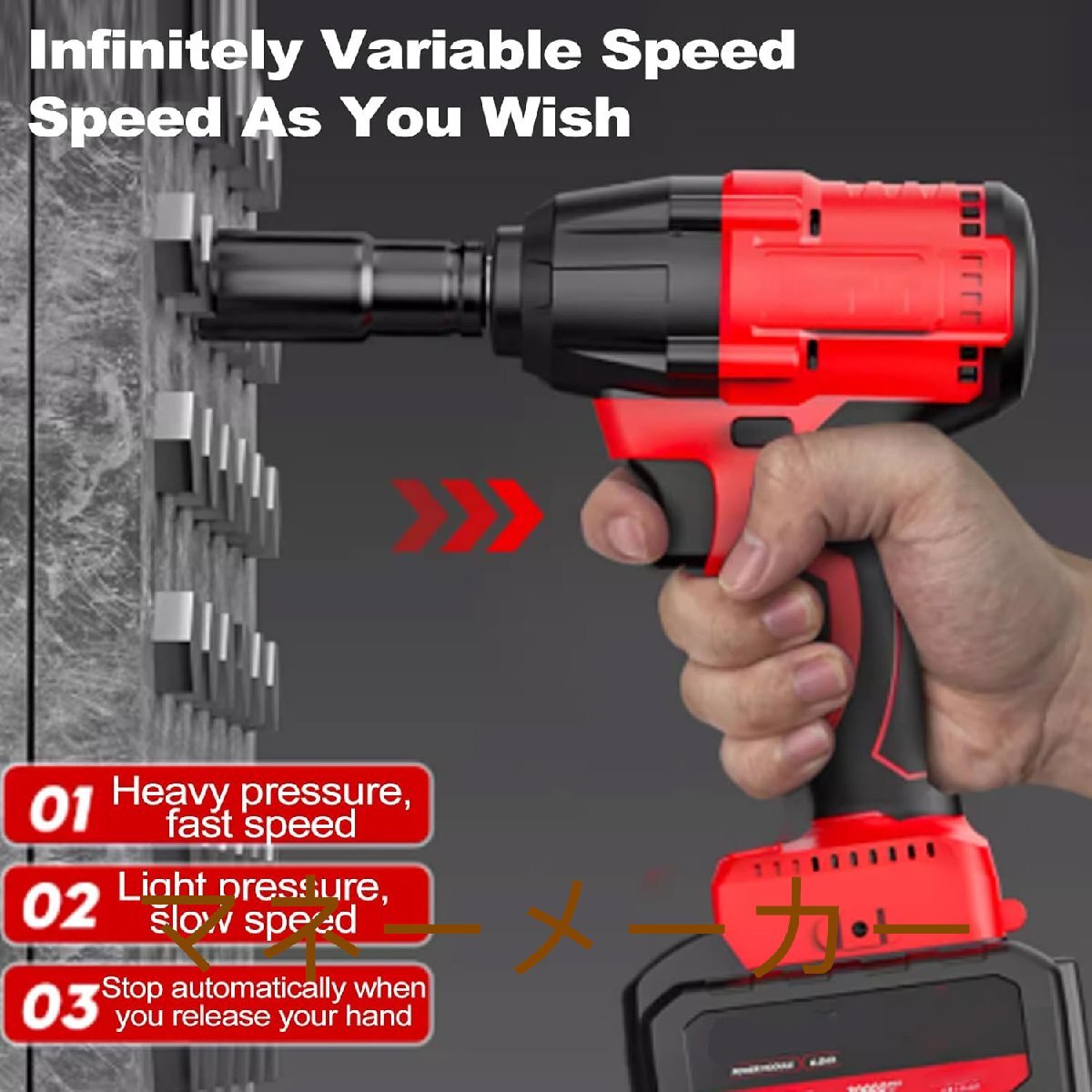 無段階速度制御:インパクトスパナの速度は自由に制御でき、圧力が強いほど速度が速くなり、手を離すと自動的に停止するため、非常に使いやすいです。