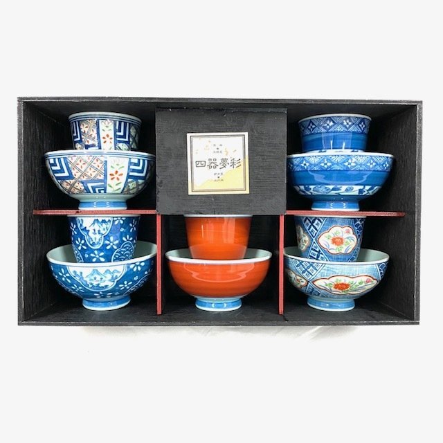 ★未使用★ 5種柄 茶碗&湯のみセット 陶器 木箱入り 四器夢彩 有田焼 波佐見焼 伊万里焼 三川内焼 清秀 和食器 来客 おもてなし |