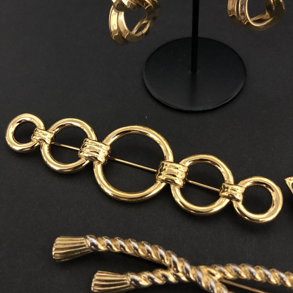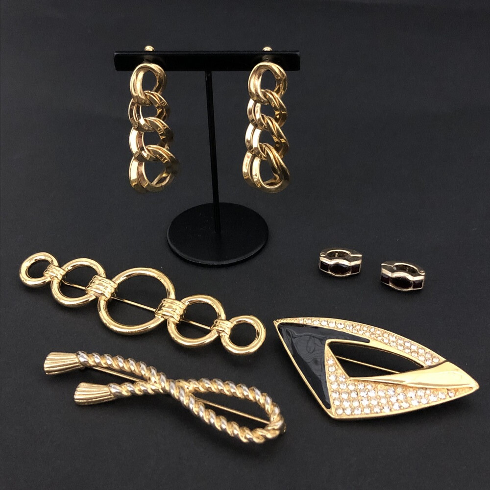 1円 美品 MONET モネ ラインストーン マグネットピアス ブローチ ピアス ネックレス レディース アクセサリー 5点セット ゴールド /ZX1188