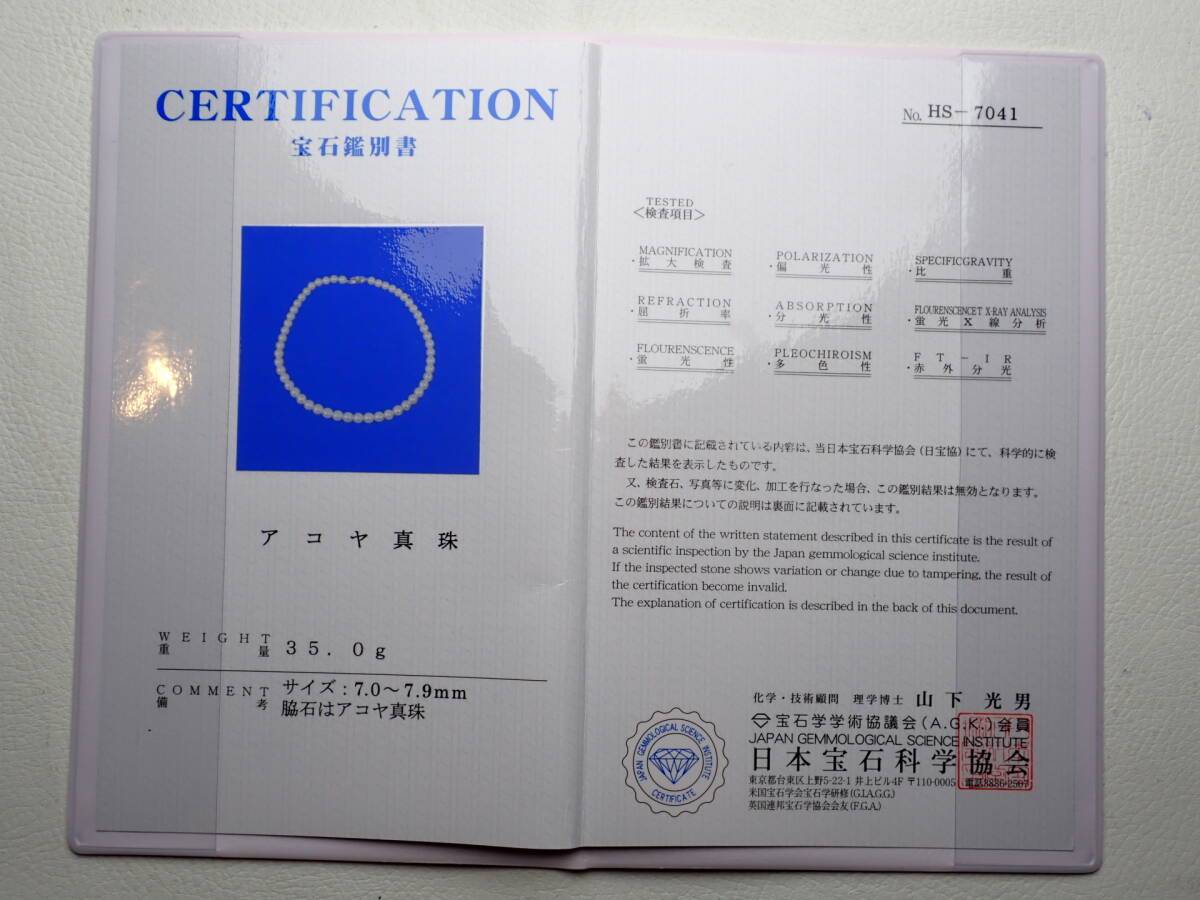 14●アコヤ真珠 ネックレス 7.0~7.9mm 35.0g 鑑別書付