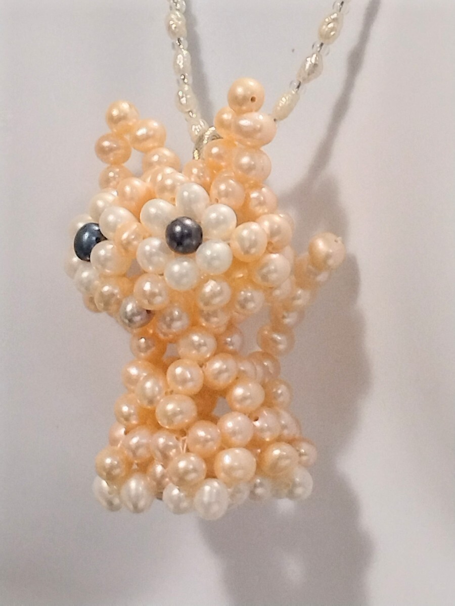 ネコはテグスで編み込まれた立体的で大きめのペンダントです。
