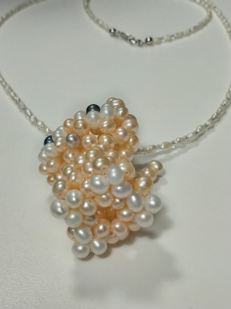 ネックレスは淡水真珠とビーズが交互に入る全長70cmです。