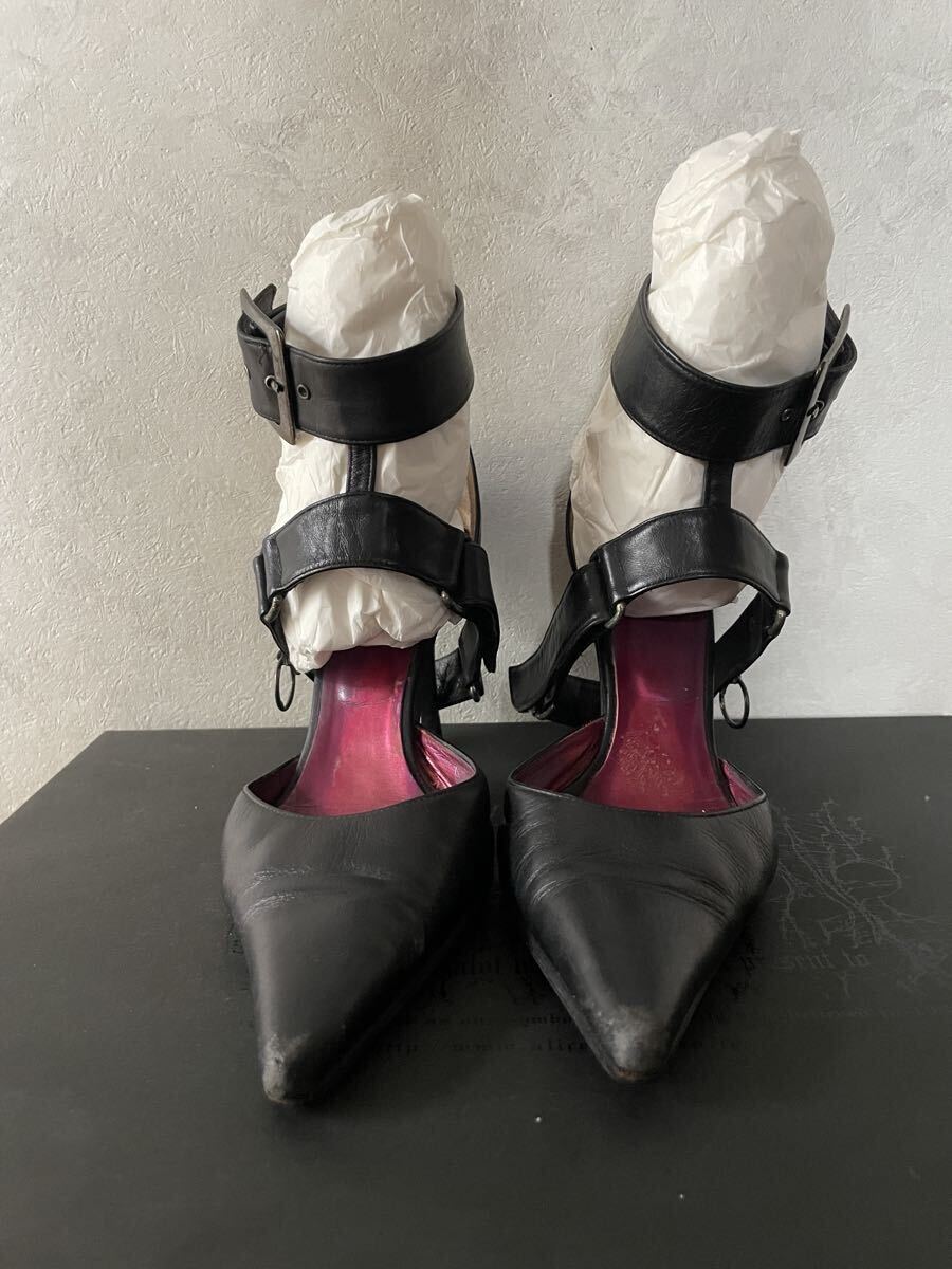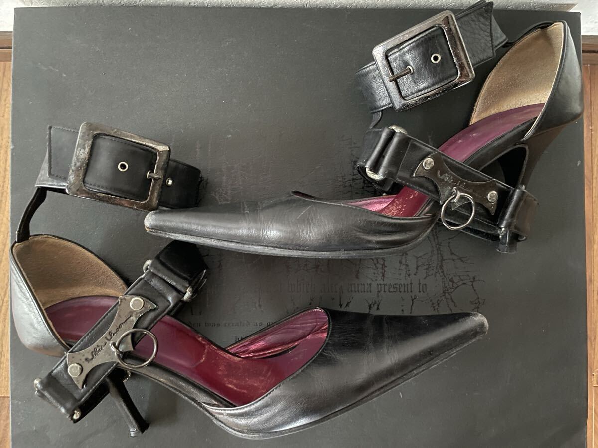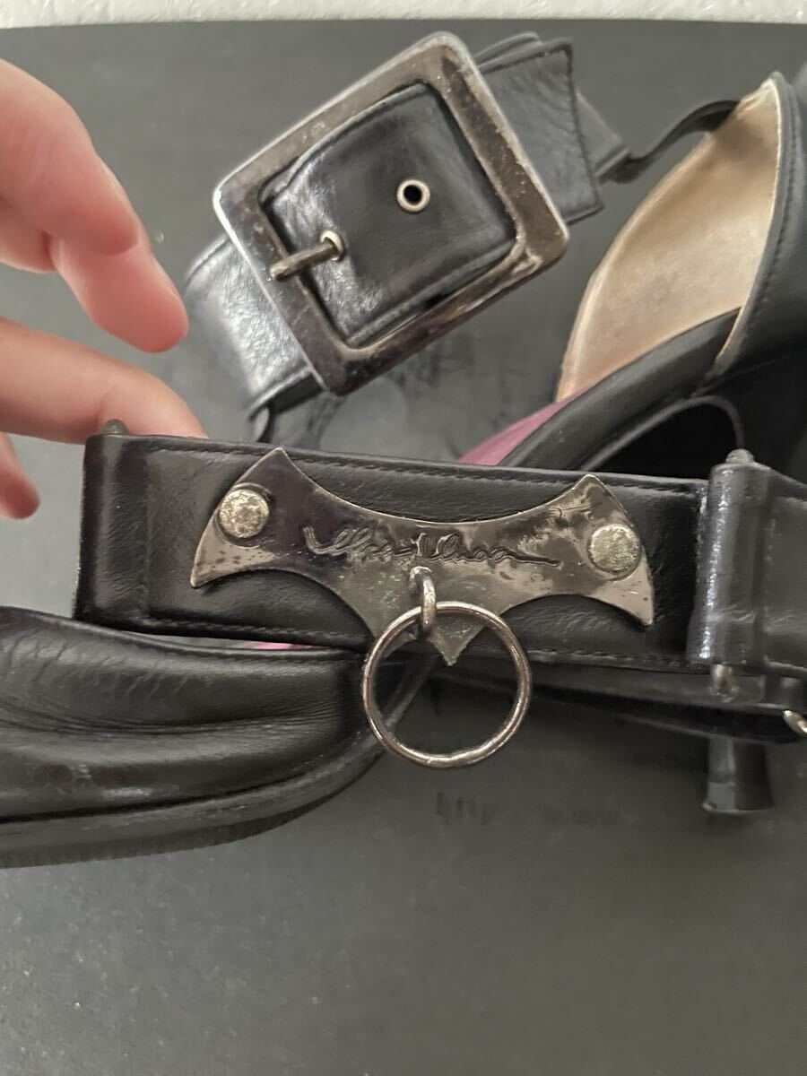 購入当時は度々使用しておりましたので、革が削れている部分、つま先の擦れ、金具部分の傷などあります。またalice auaaのシューズは底も革張りで滑るため、ラバーを貼っております。