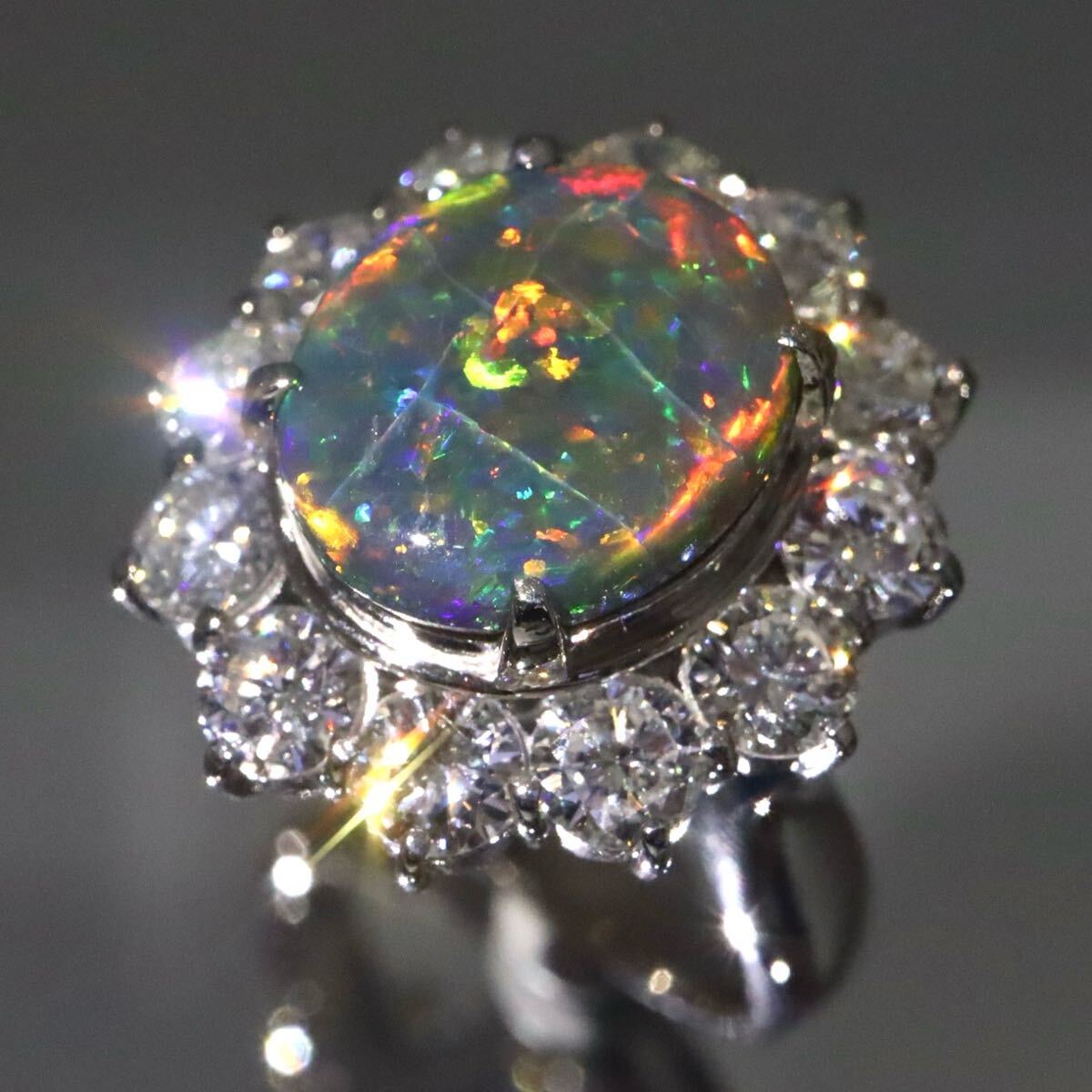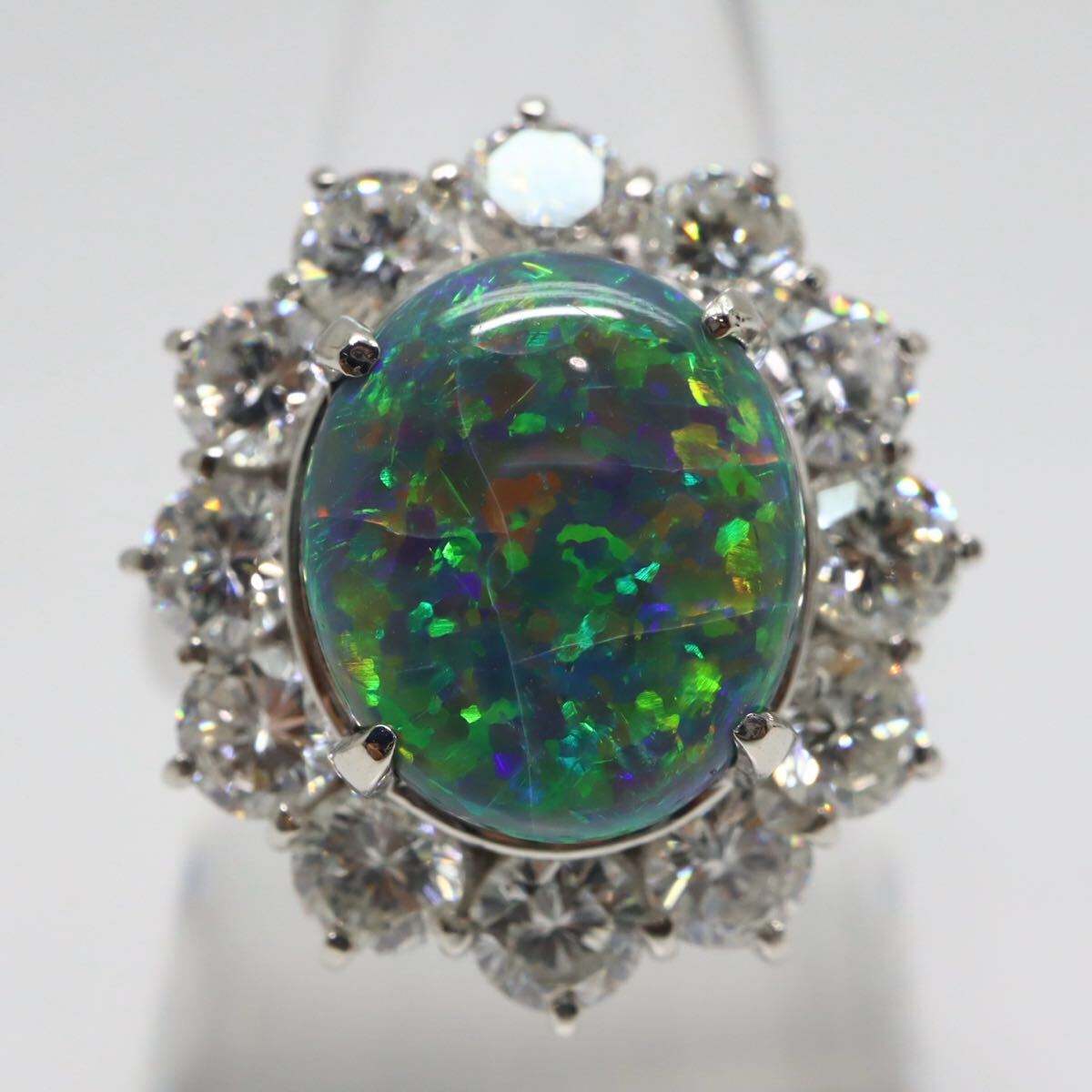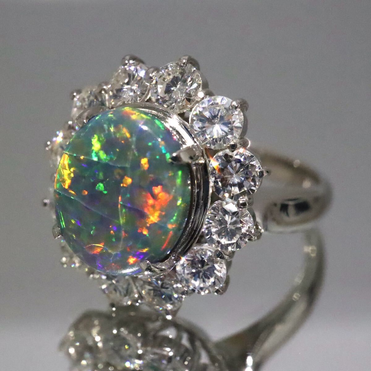 〈天然ブラックオパール/天然ダイヤモンドリング〉
