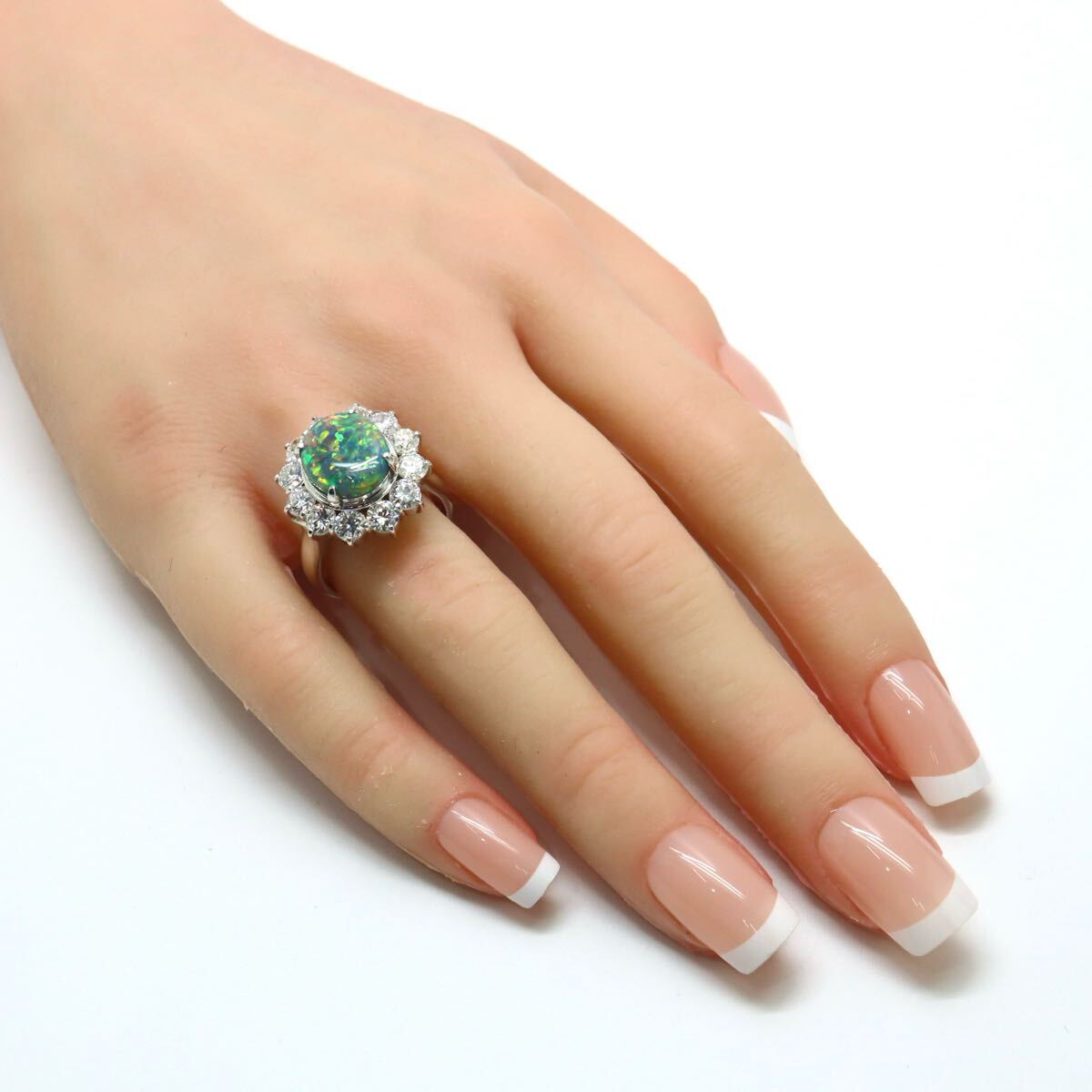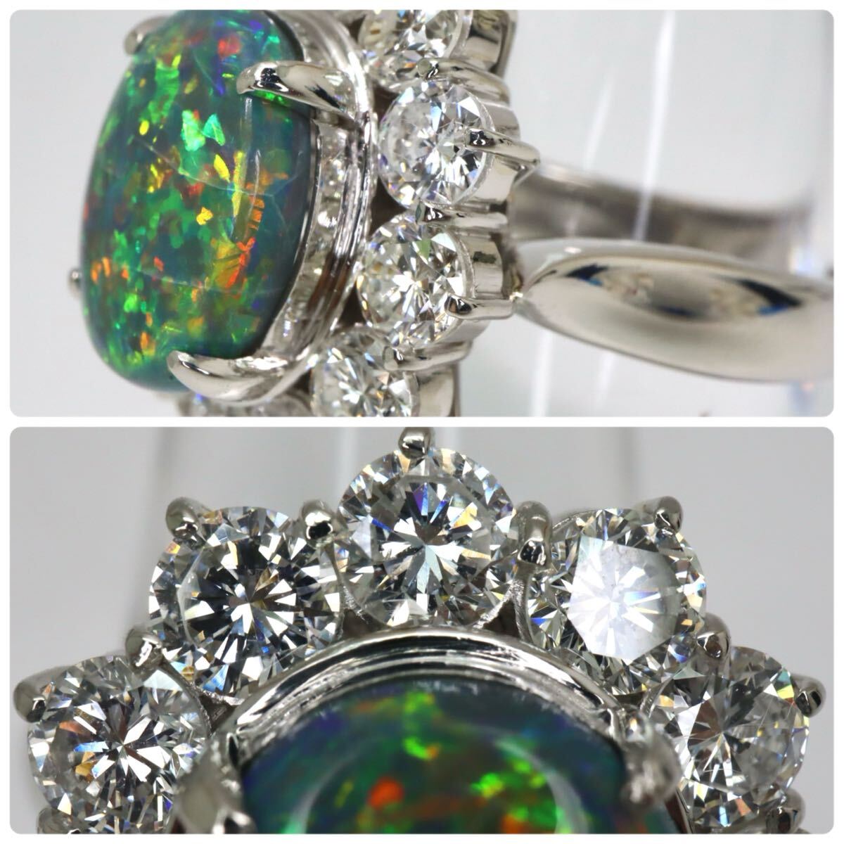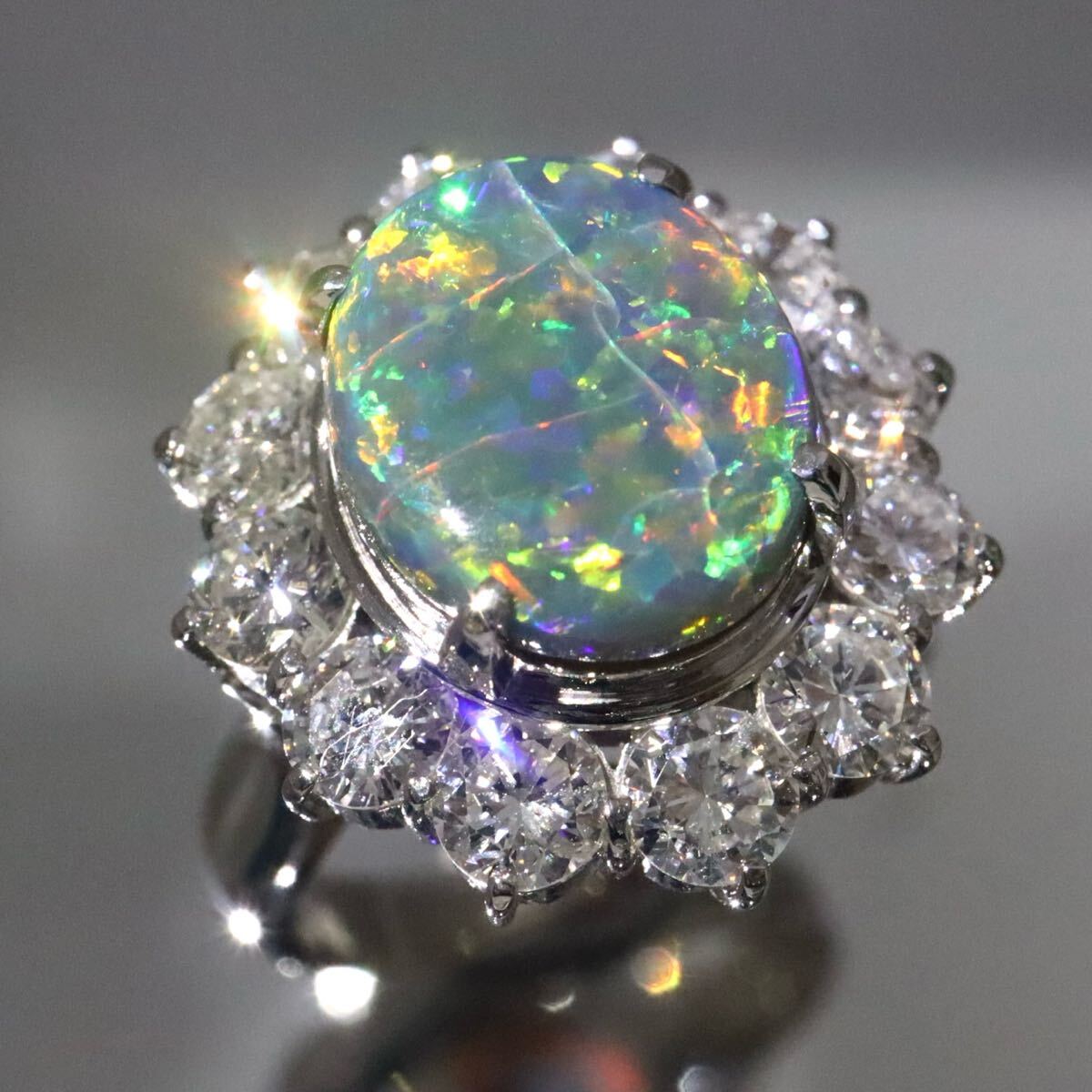 〈天然ブラックオパール/天然ダイヤモンドリング〉