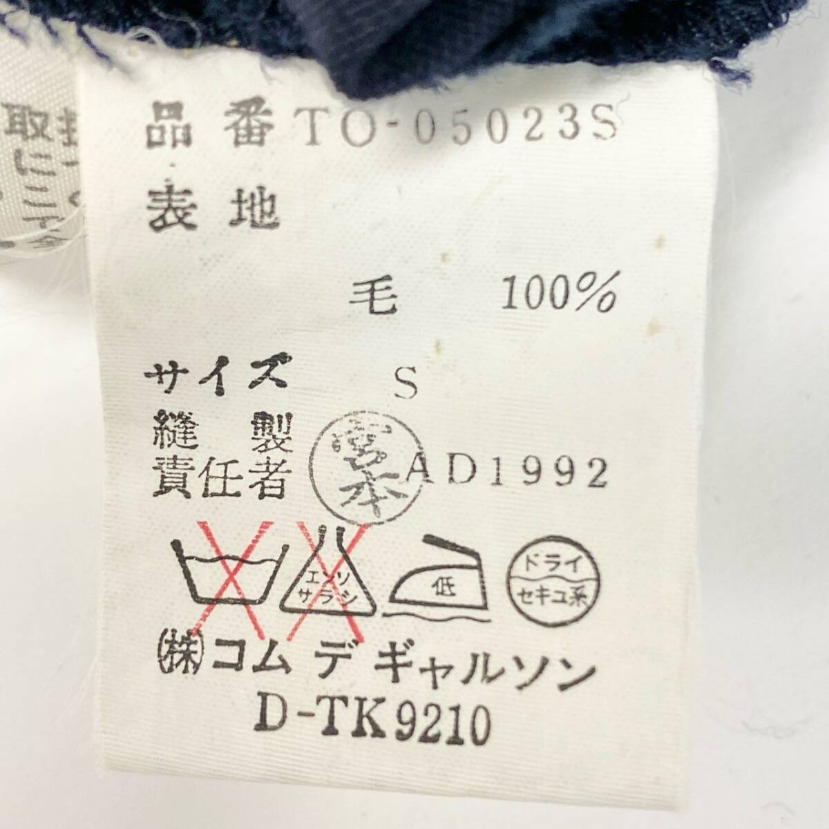 スタッフ商品コメント | tricot COMME des GARONS(トリコ・コムデギャルソン)のロングチェスターコート〈AD1992 TO-05023S〉。深みのあるミッドナイトネイビーの無地に、マットな質感のウール素材を使用した上品な一着です。フロントのボタンが縦に並ぶミニマルなデザインで、ウエストラインにわずかなシェイプを効かせた女性らしいシルエット。1992年製のアーカイブピースとしても価値が高く、クラシックなスタイルを好む方におすすめです。 |