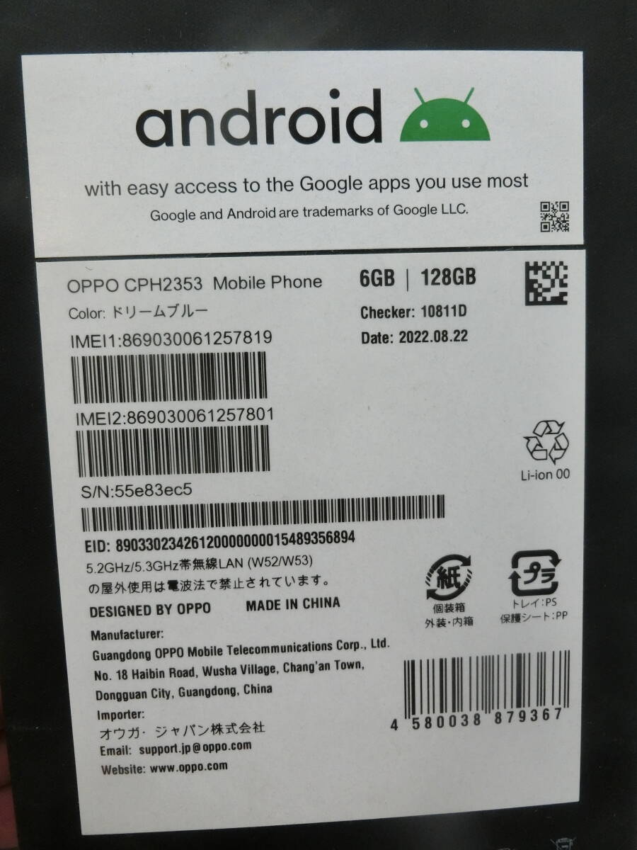 商品名:K10012◆OPPO Reno7 A 128GB ドリームブルー CPH2353 判定○ アンドロイド スマートフォン 紙箱 楽天モバイル 【5500】