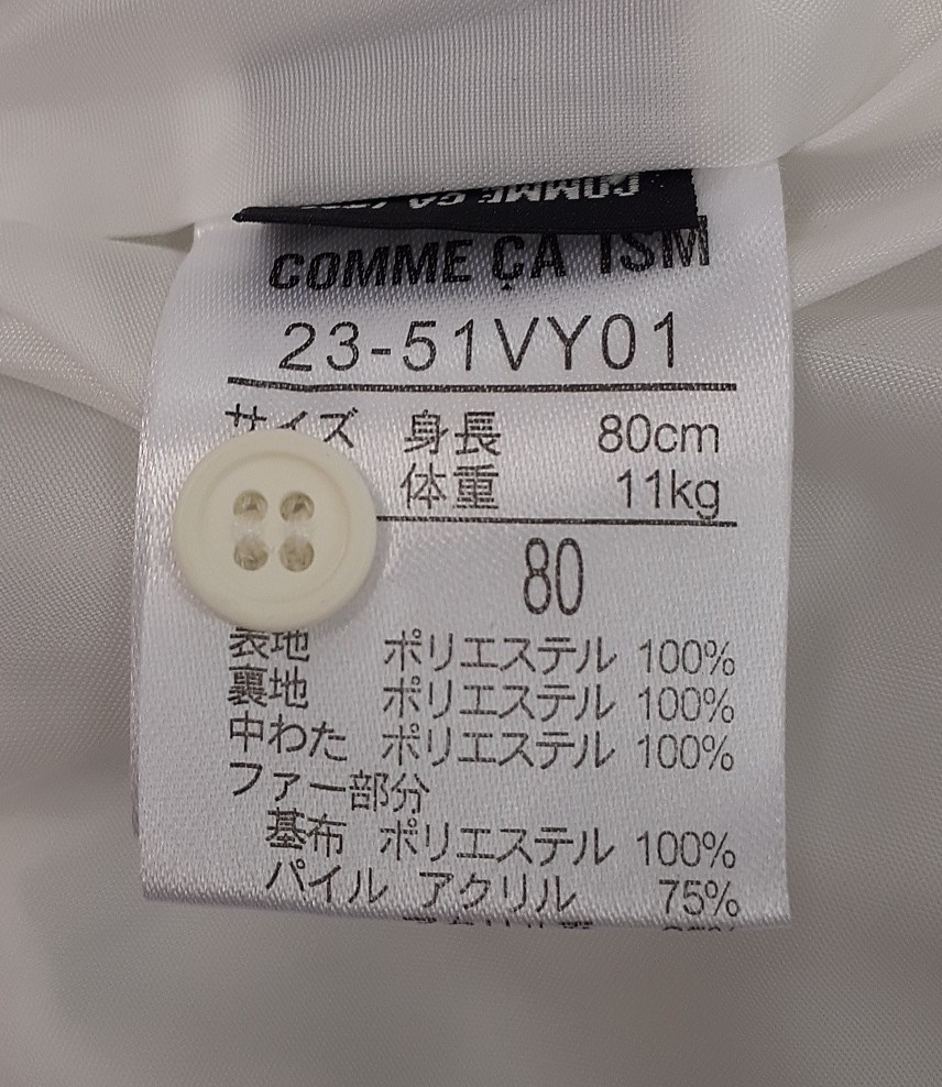 s195 女の子 ガールズ アウター 冬ジャンパー ポリエステル ホワイト 白 子供服 ベビー服 COMME CA ISM コムサイズム ブランド