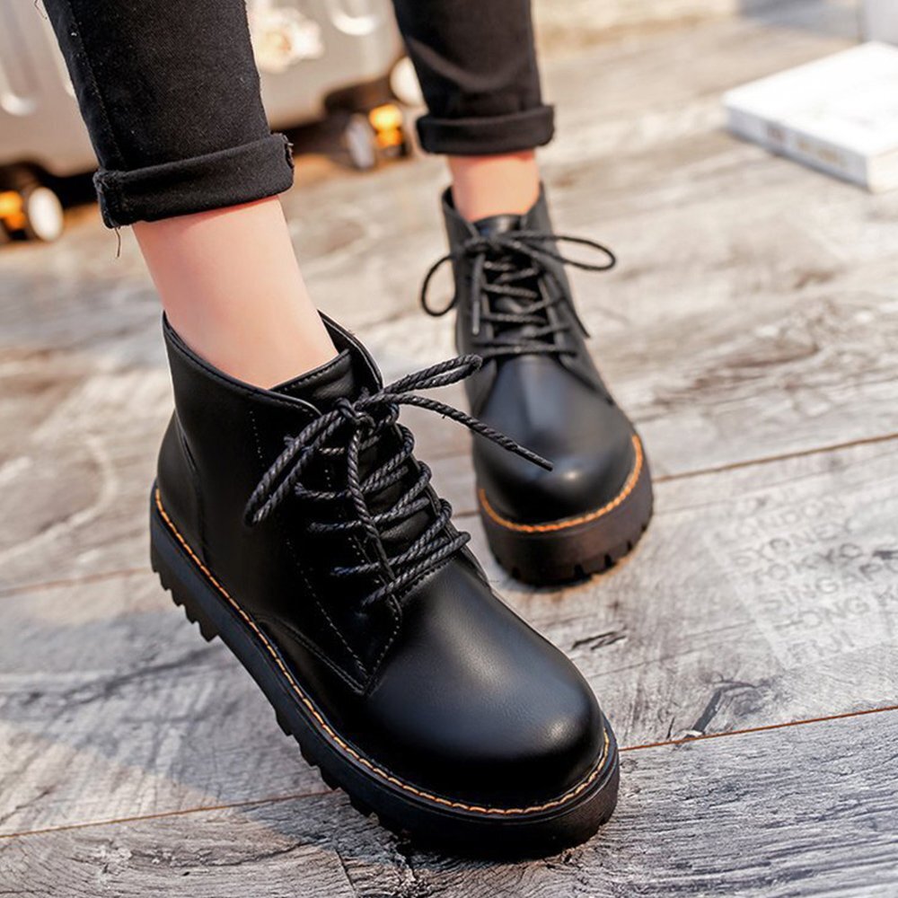 トラックソールブーツ おしゃれ ボリュームソール 編み上げシューズ ローヒール靴 アンクルブーツ カジュアル靴 秋冬人気