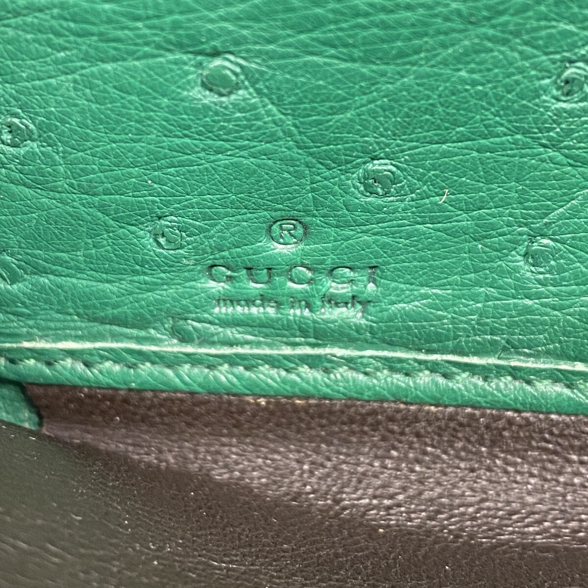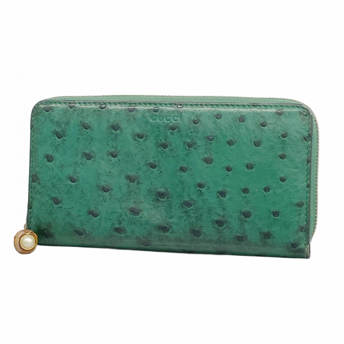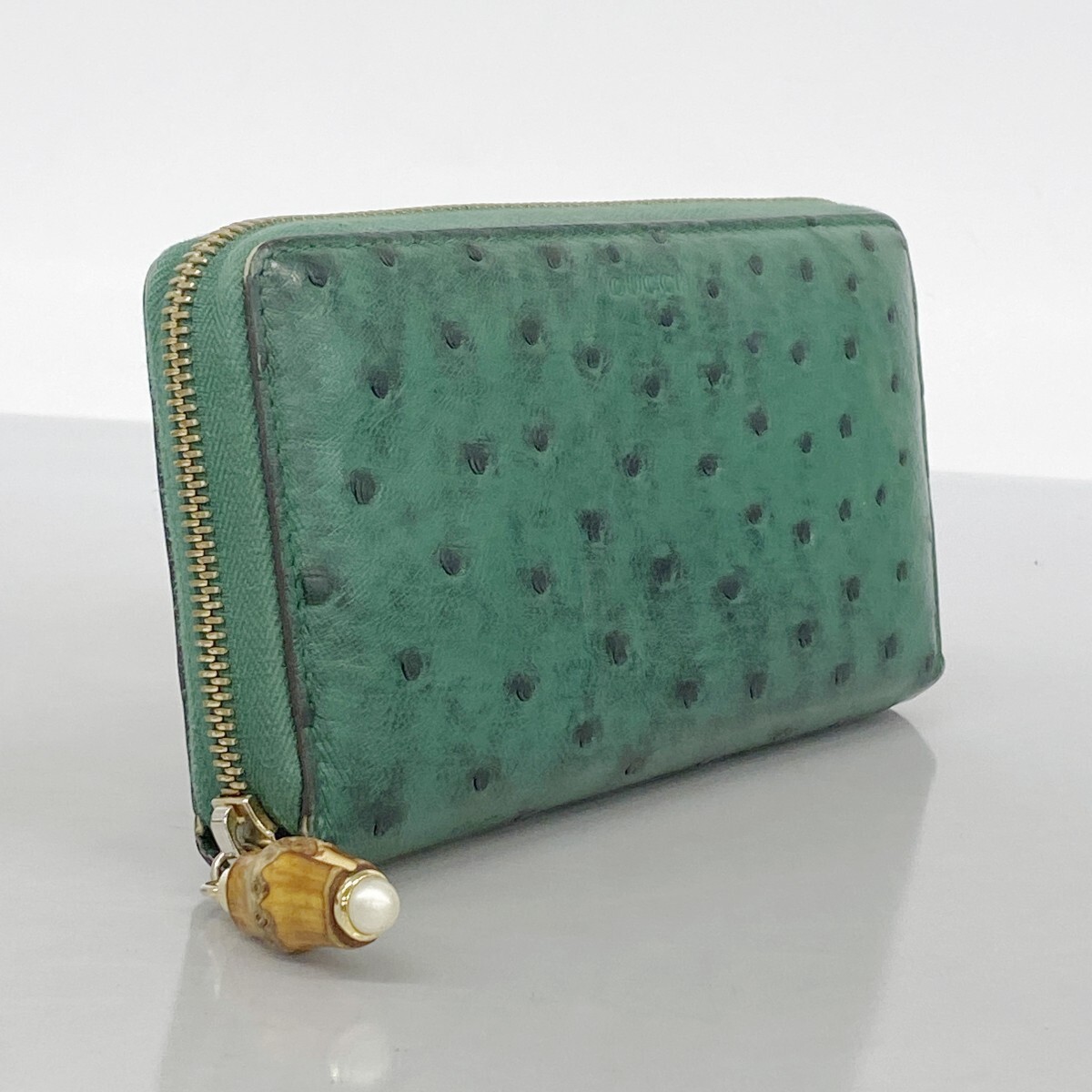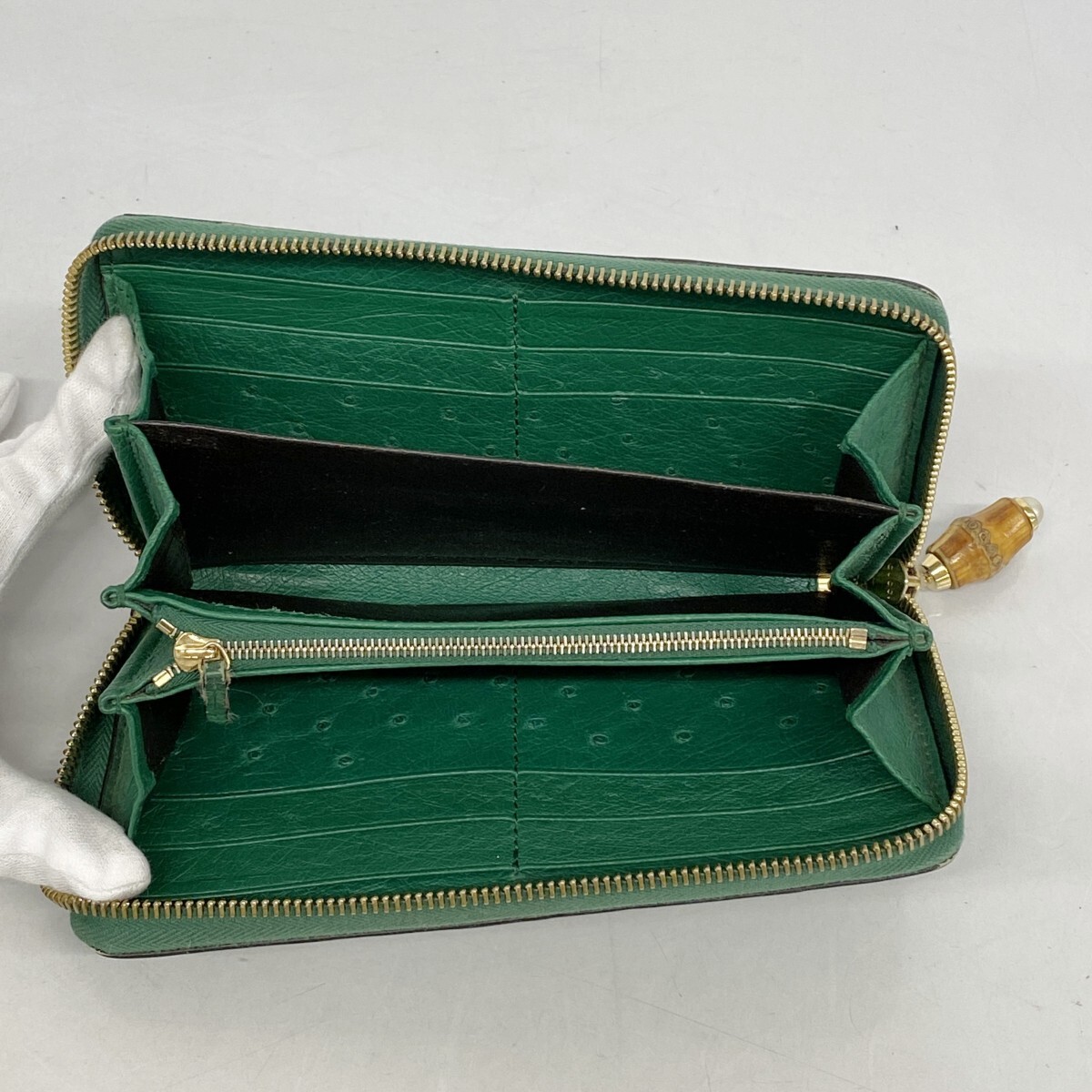 ★SALE【5id4685-h】グッチ 長財布 バンブー 453158 オーストリッチ グリーン ゴールド金具【中古】レディース
