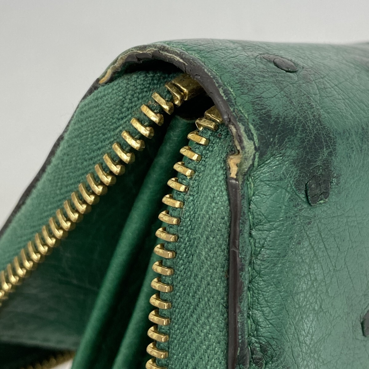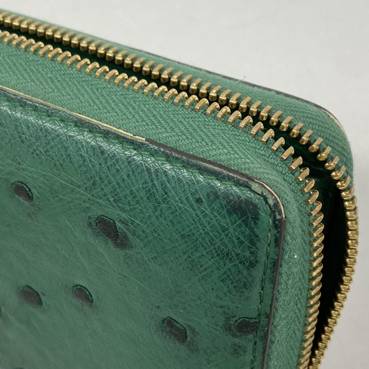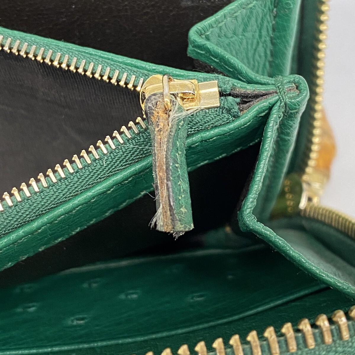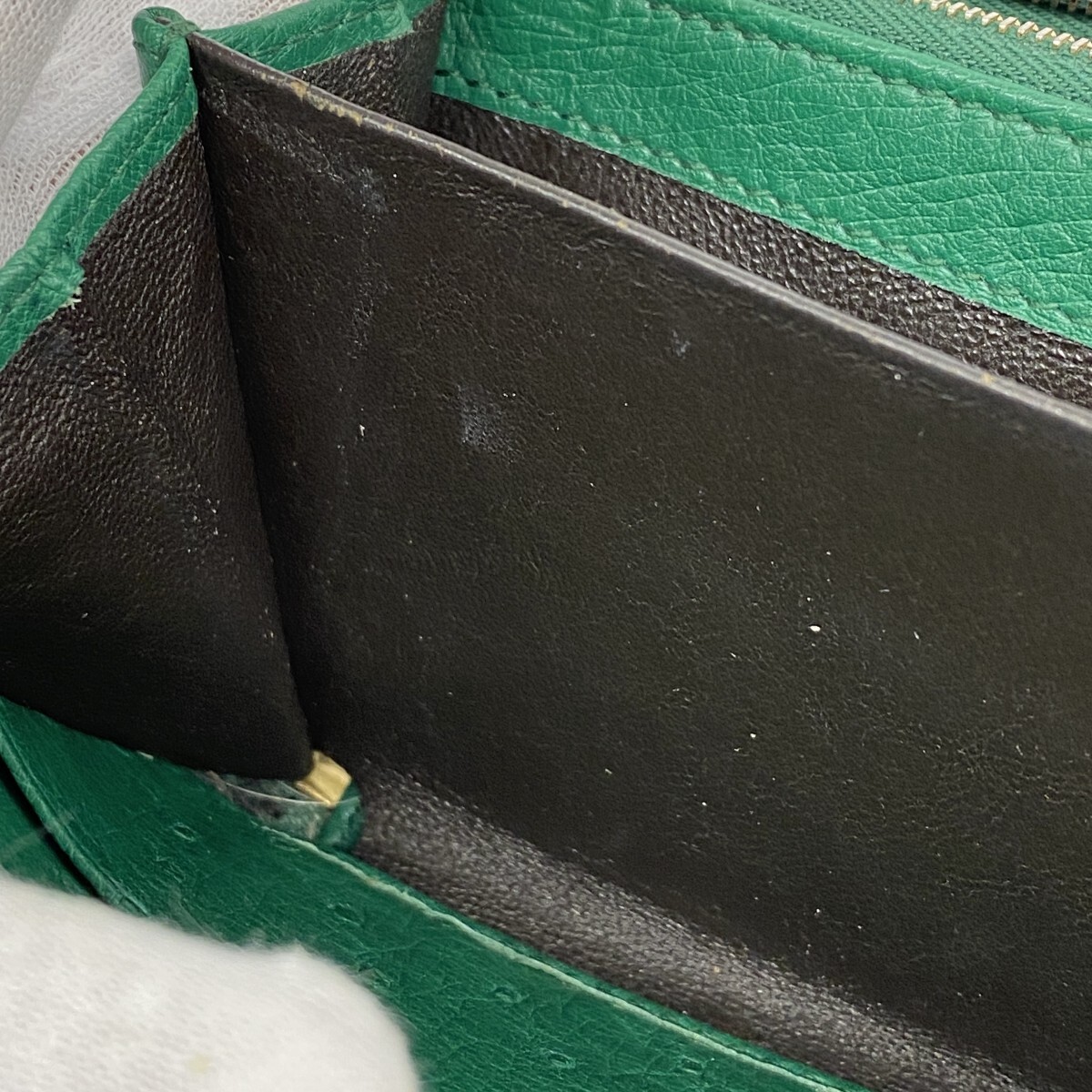 ★SALE【5id4685-h】グッチ 長財布 バンブー 453158 オーストリッチ グリーン ゴールド金具【中古】レディース