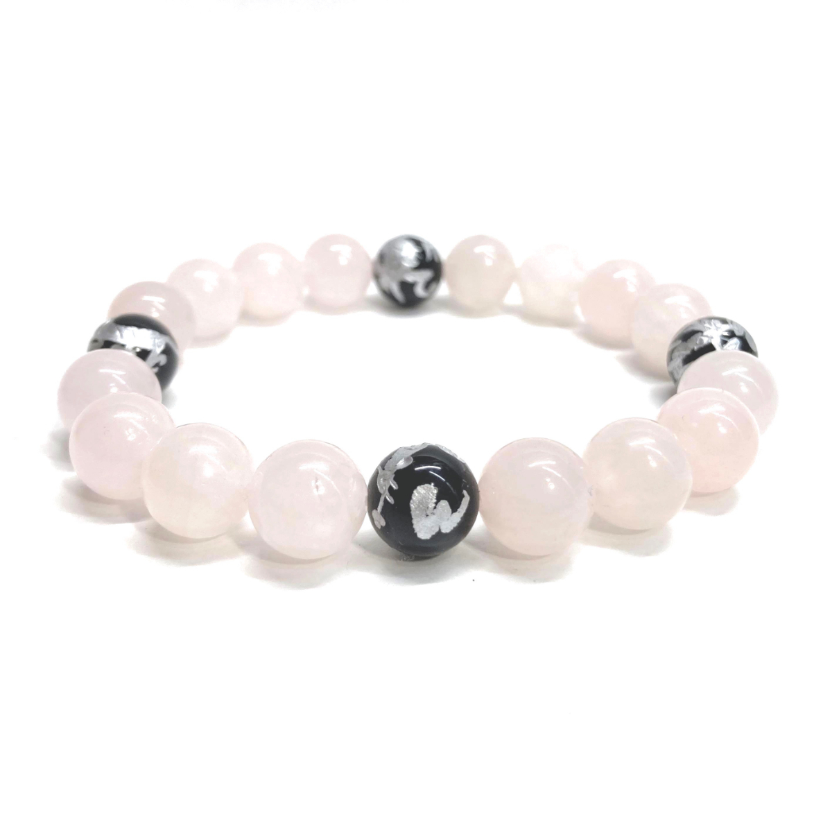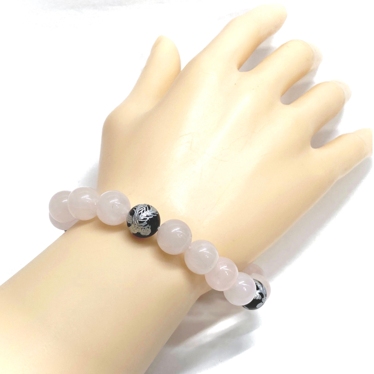 10mm 四神獣銀彫オニキス×ローズクォーツ パワーストーン ブレスレット天然石 運気上昇 開運 金運 恋愛運 青龍 白虎 玄武 朱雀 ☆