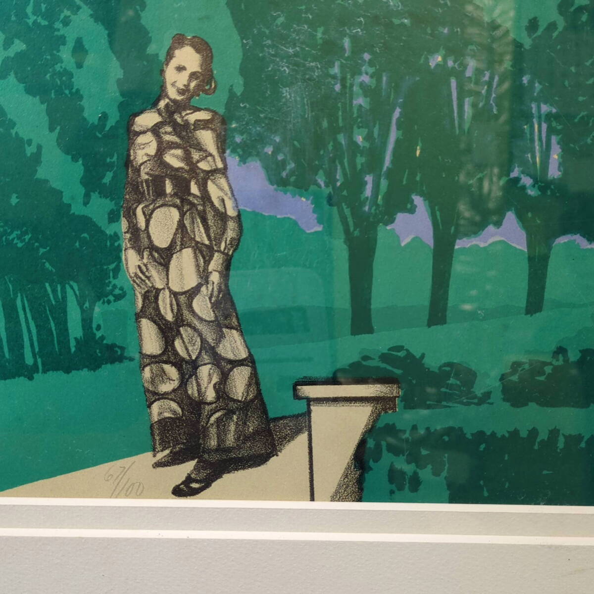 kankando【池田満寿夫リトグラフ『マーガレットの庭』限100 1970 額装】《真作》人気作品!
