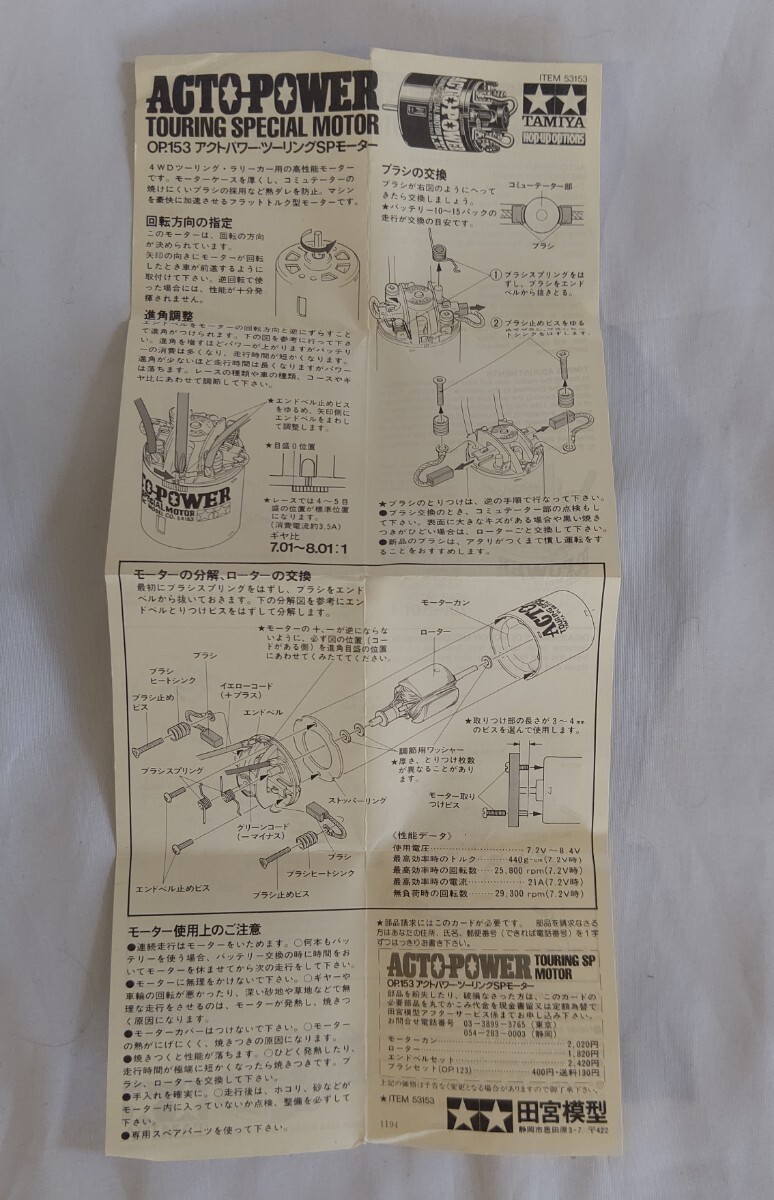 TAMIYA/タミヤ ホップアップオプションズ OP.153 アクトパワー ツーリング SPモーター