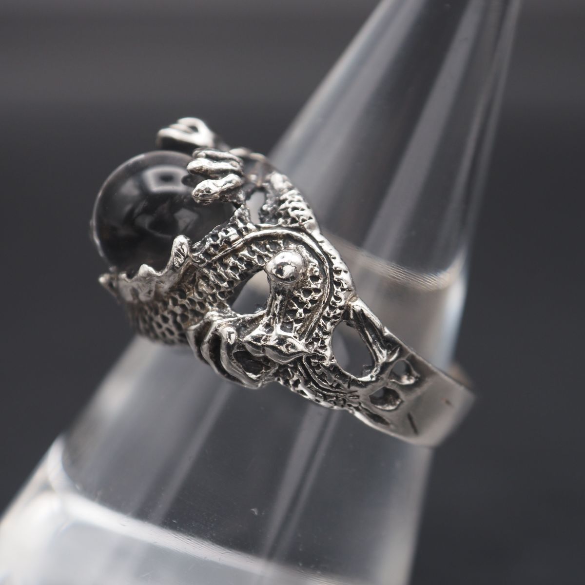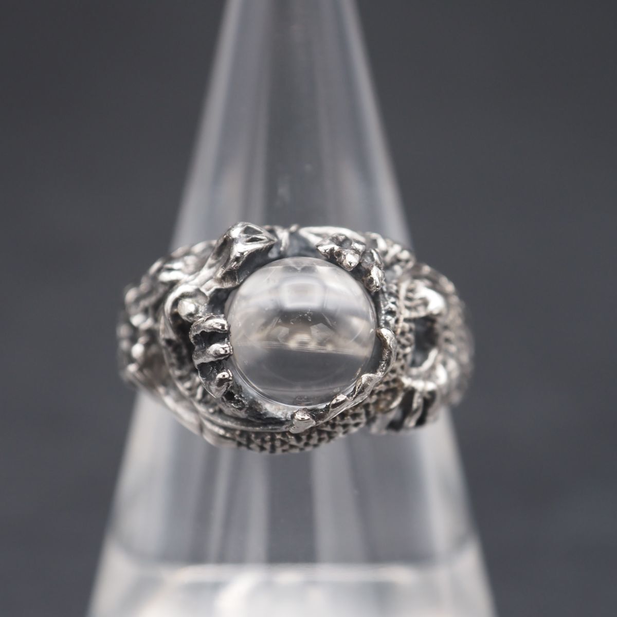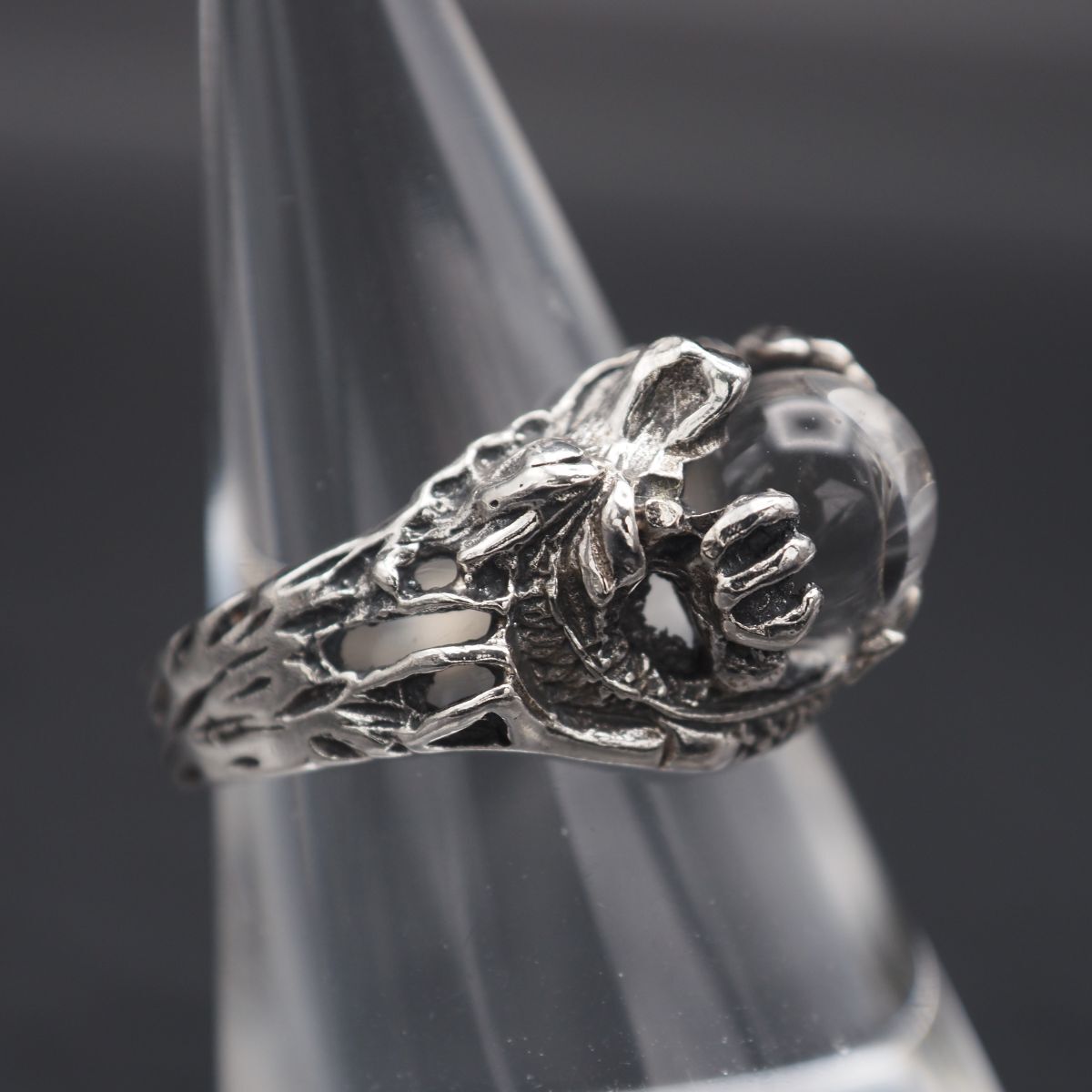 F952 水晶 925刻印 リング 龍 ドラゴン デザイン シルバー 指輪 15-16号