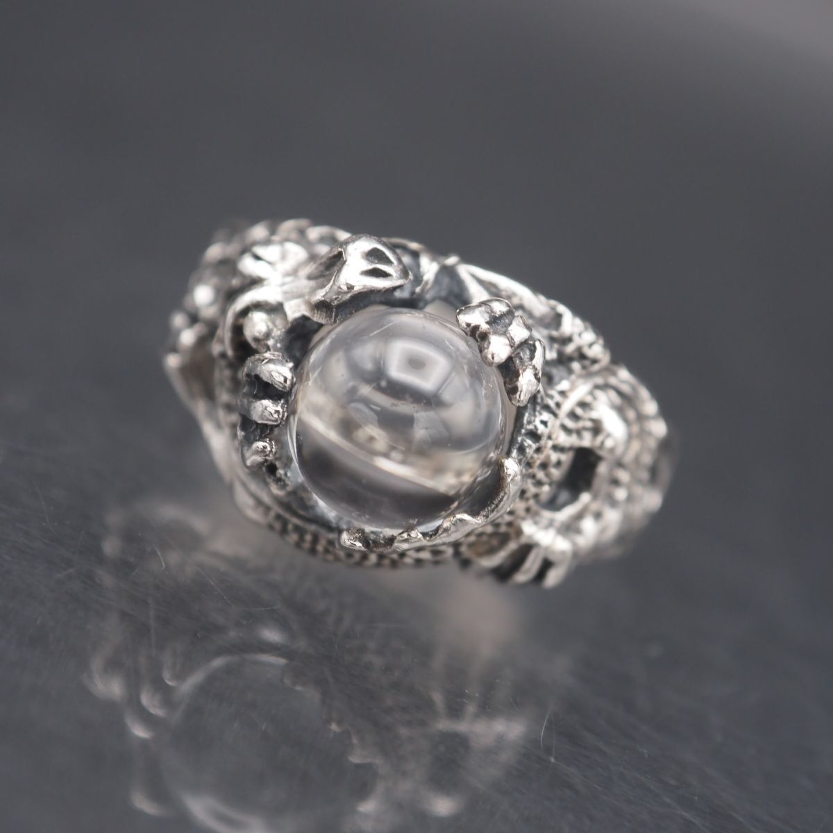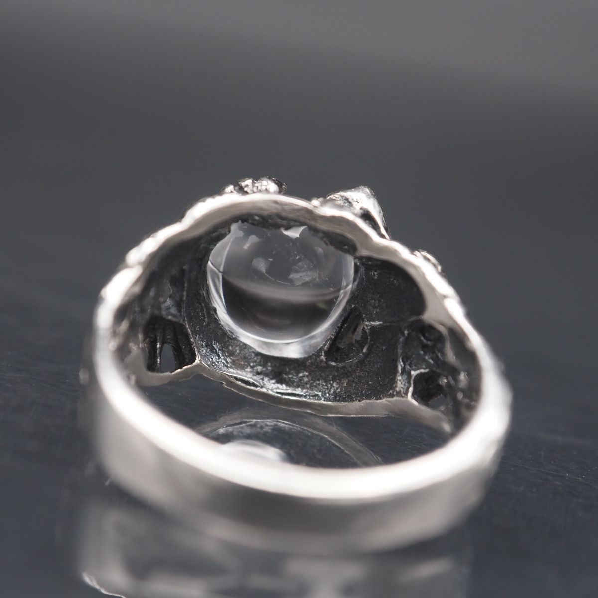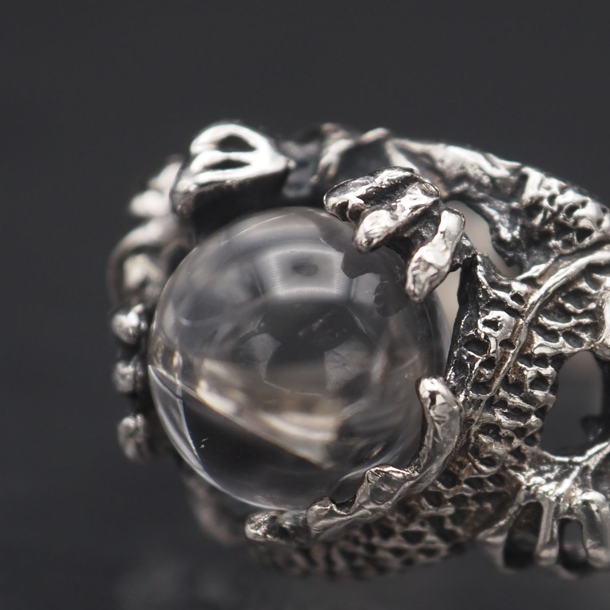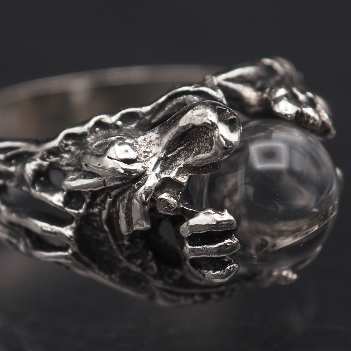 F952 水晶 925刻印 リング 龍 ドラゴン デザイン シルバー 指輪 15-16号
