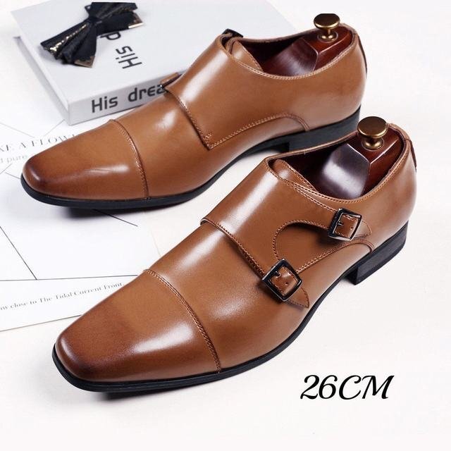 ビジネスシューズ メンズシューズ モンクストラップ 靴 フォーマル PU革 革靴 就活 ロングノーズ 紳士靴  ブラウン 26cm