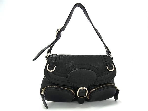 1円 ■美品■ BURBERRY バーバリー レザー ワンショルダーバッグ ハンドバッグ 肩掛けかばん レディース ブラック系 FS2873