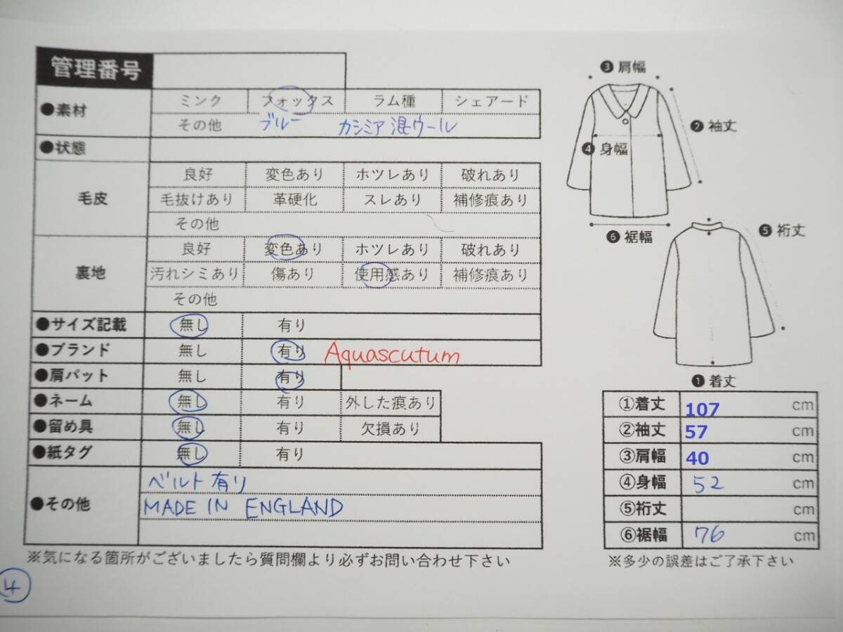 ☆Aquascutum☆ブルーフォックスカシミア混ウール☆ロングコート☆着丈107cm☆MADE IN ENGLAND☆