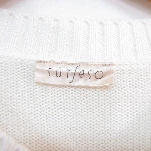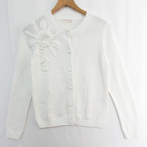スチェッソ SUTSESO ニット カーディガン 長袖 コットン 40 ホワイト モチーフ kz13067 レディース