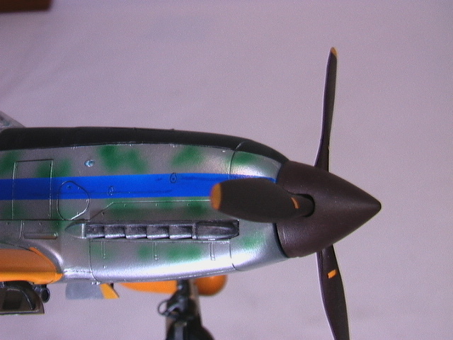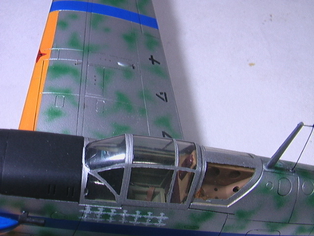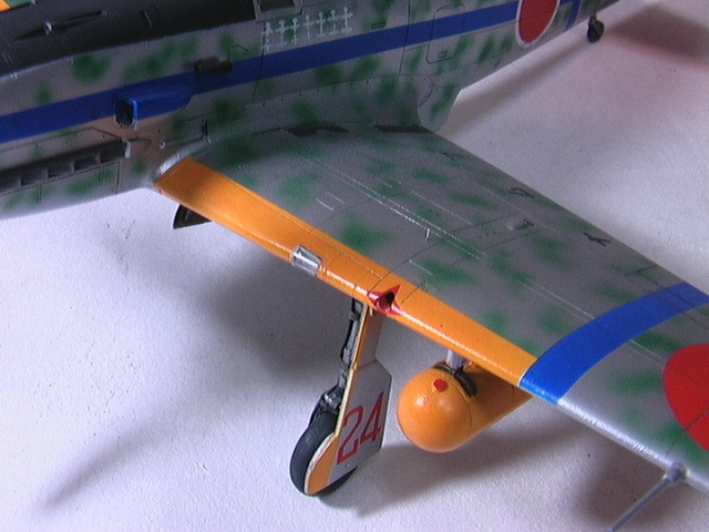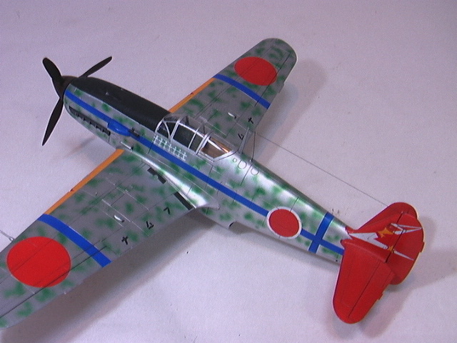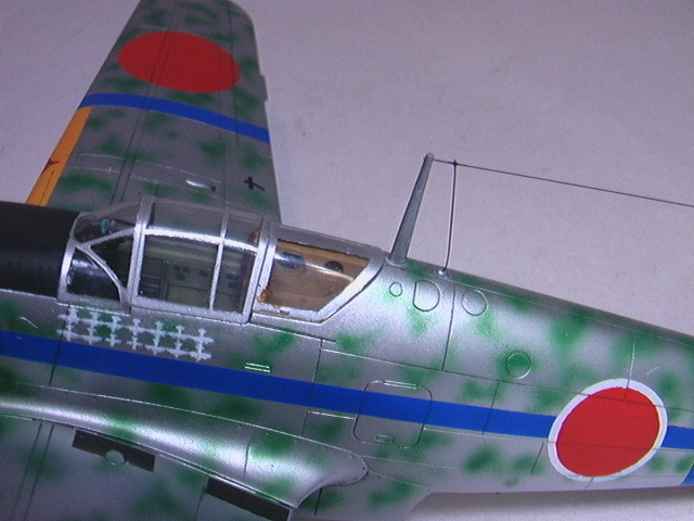 エアブラシで塗装、日の丸、ストライプは塗装、デカールを貼り半艶消しクリアーでオーバーコート、スミ入れアンテナ線をストレッチリギングで張り。