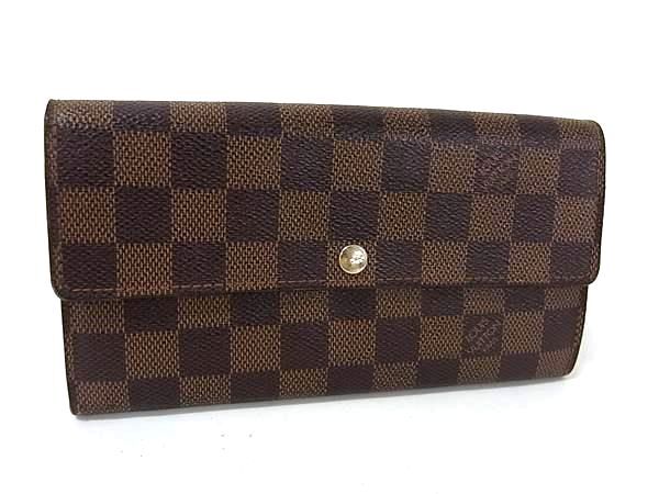 1円 LOUIS VUITTON ルイヴィトン N61734 ダミエ ポルトフォイユ サラ 二つ折り 長財布 ウォレット ブラウン系 FQ2646