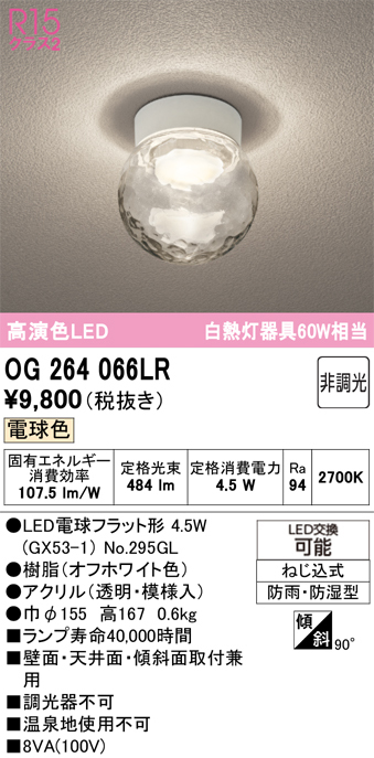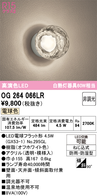 OG264066LR オーデリック 浴室灯 ポーチライト 白熱灯器具60W相当 電球色 防雨防湿型