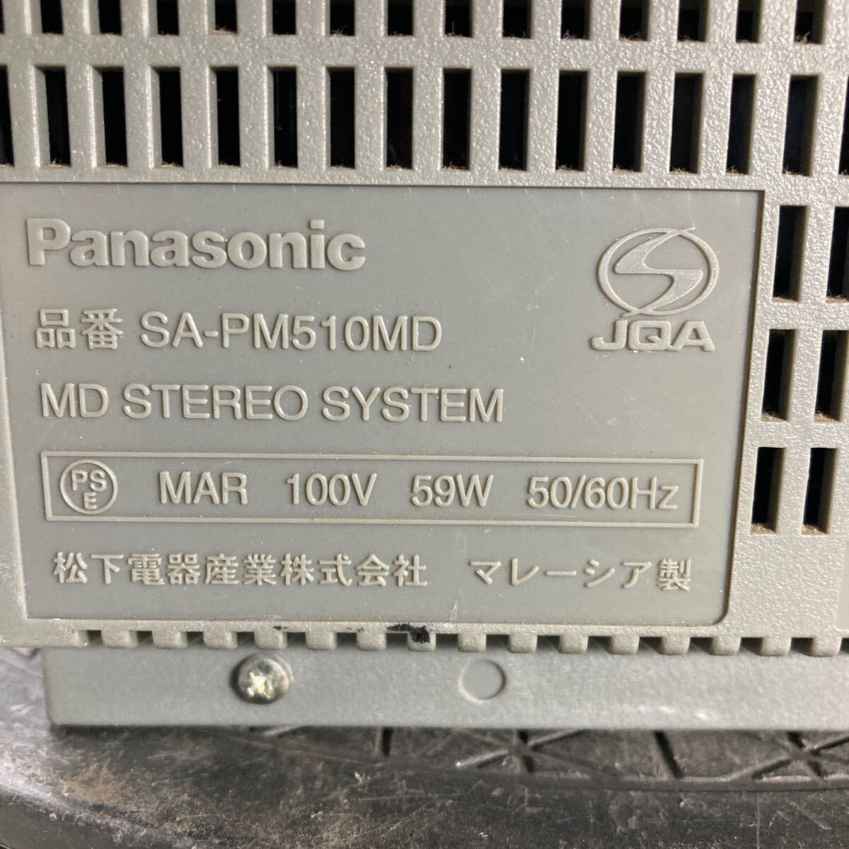 MYM10-183 激安 Panasonic MD STEREO SYSTEM SA-PM510MD 通電、電源オン、オフOK 中古現状品 ※3回再出品で処分