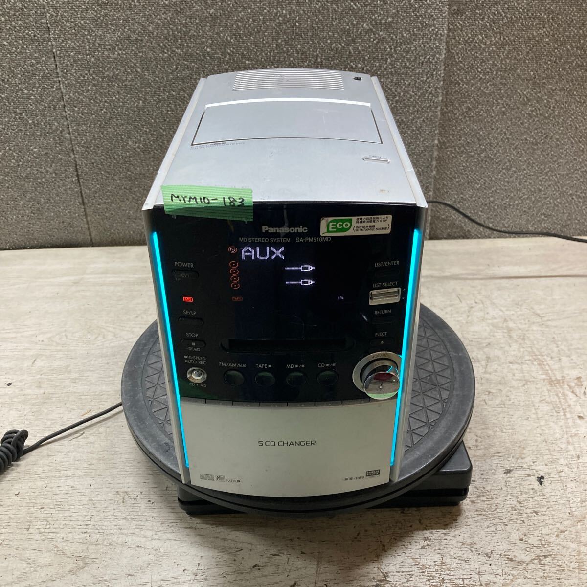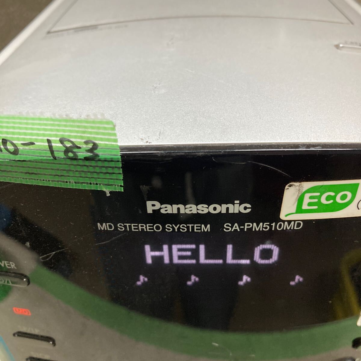 MYM10-183 激安 Panasonic MD STEREO SYSTEM SA-PM510MD 通電、電源オン、オフOK 中古現状品 ※3回再出品で処分