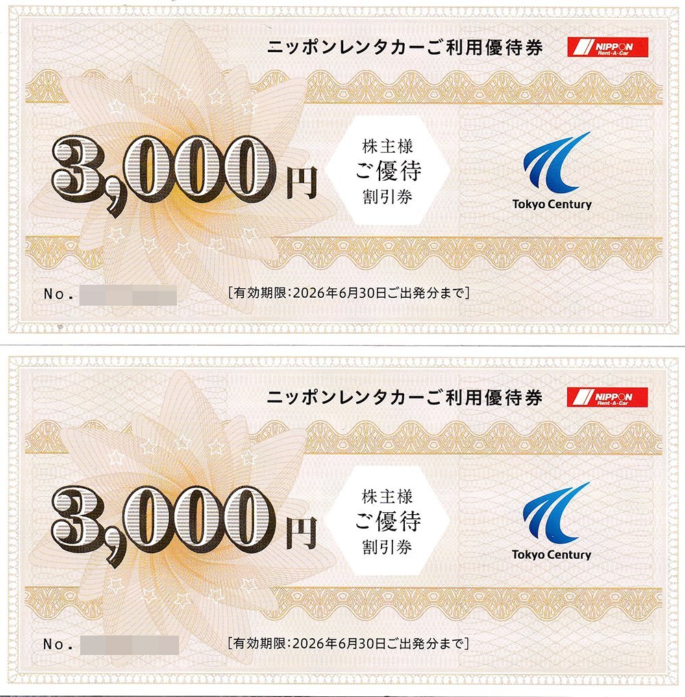 出 品 商 品 | 東京センチュリー株主優待 ニッポンレンタカー ご利用優待券 6000円分(3000円券×2枚) |