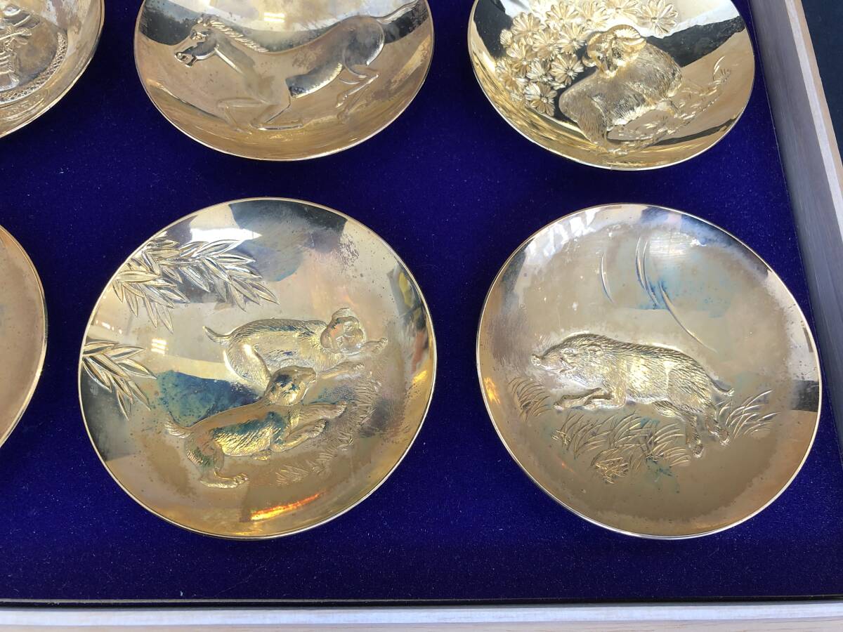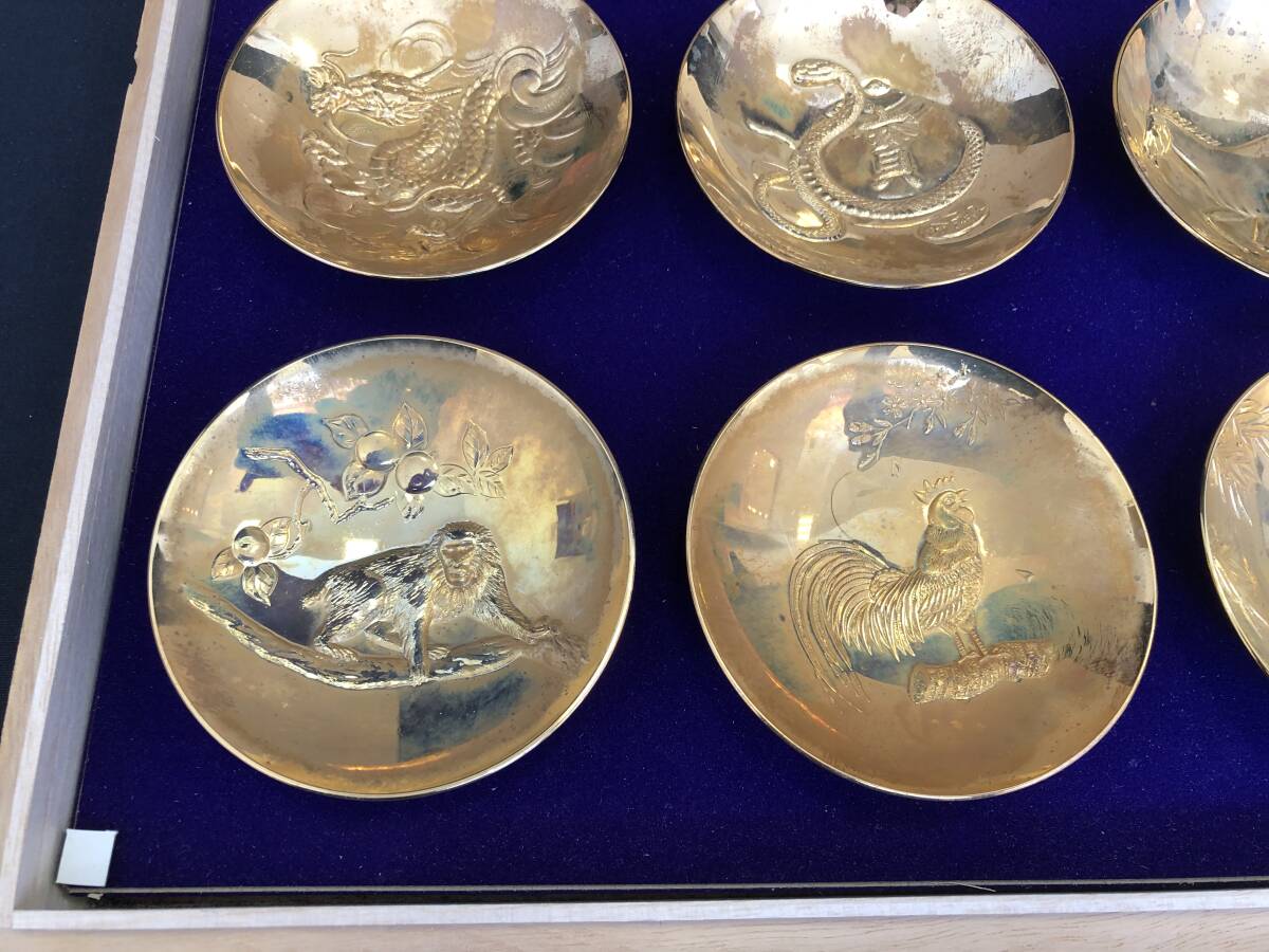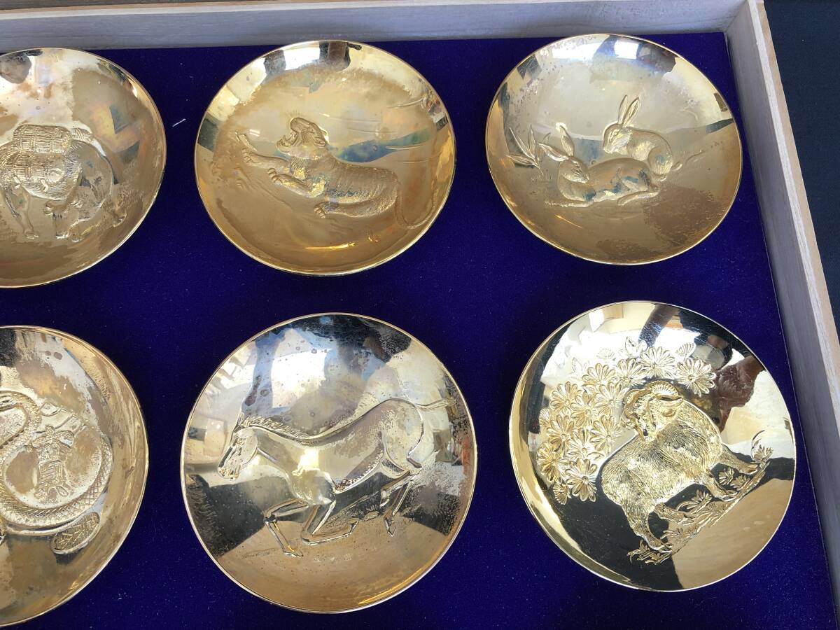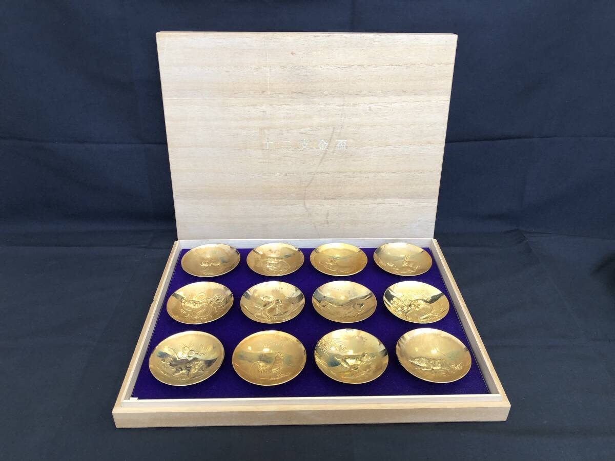 《11160》十二支金盃 24KGP 24K金メッキ 酒器 干支 縁起物 共箱付 | |||