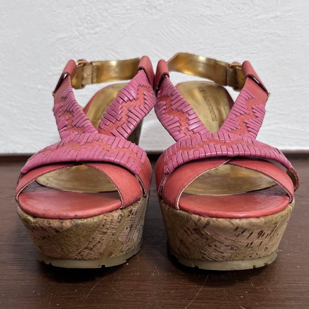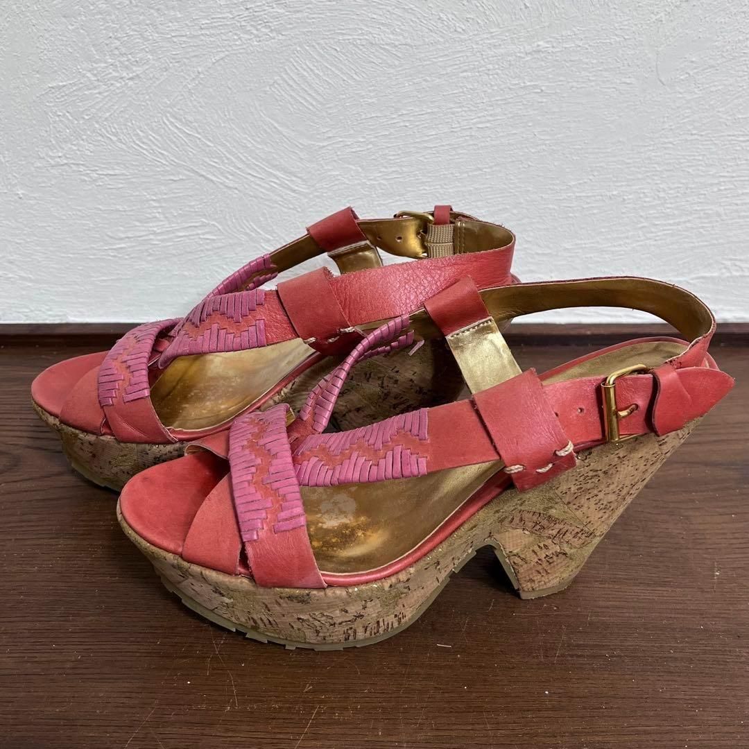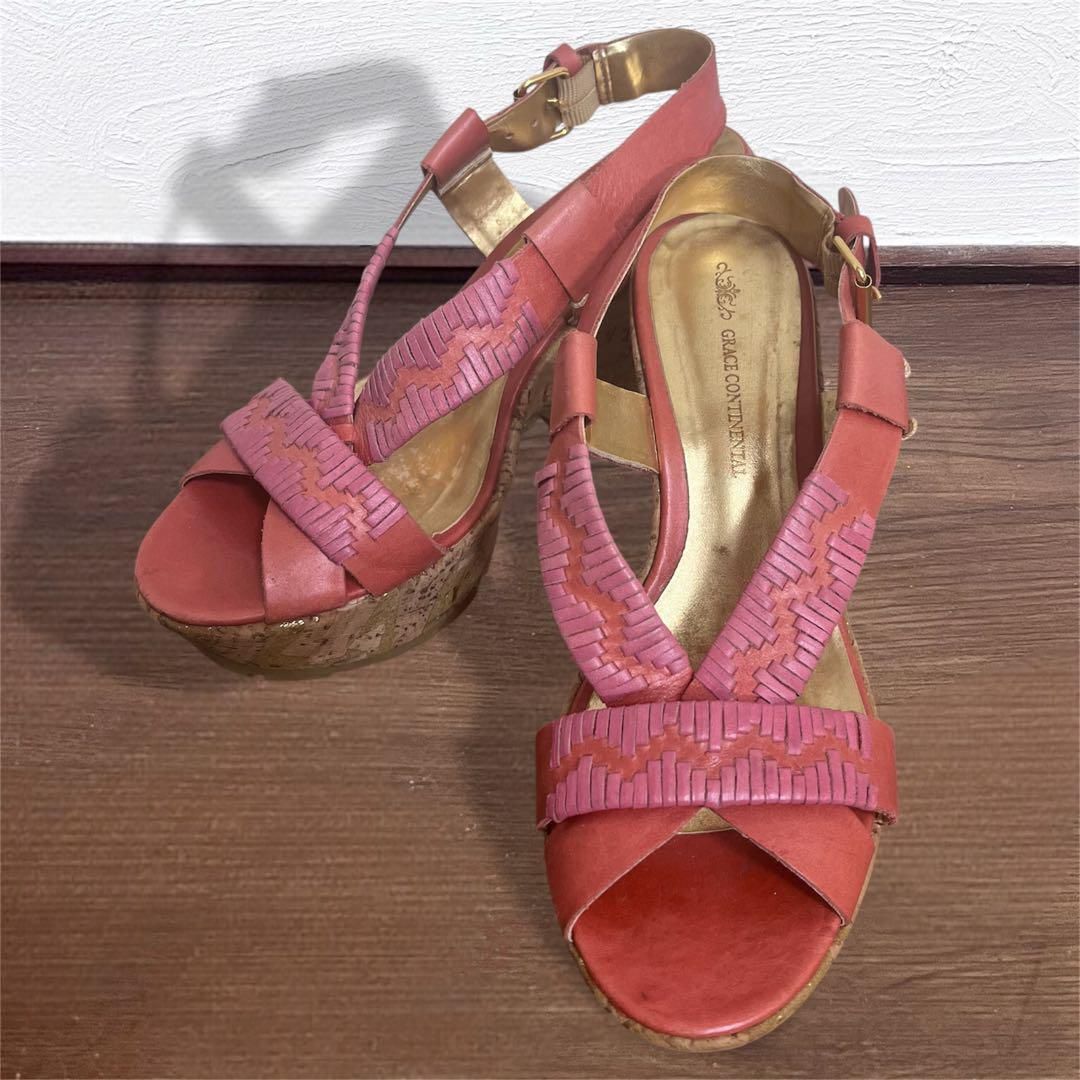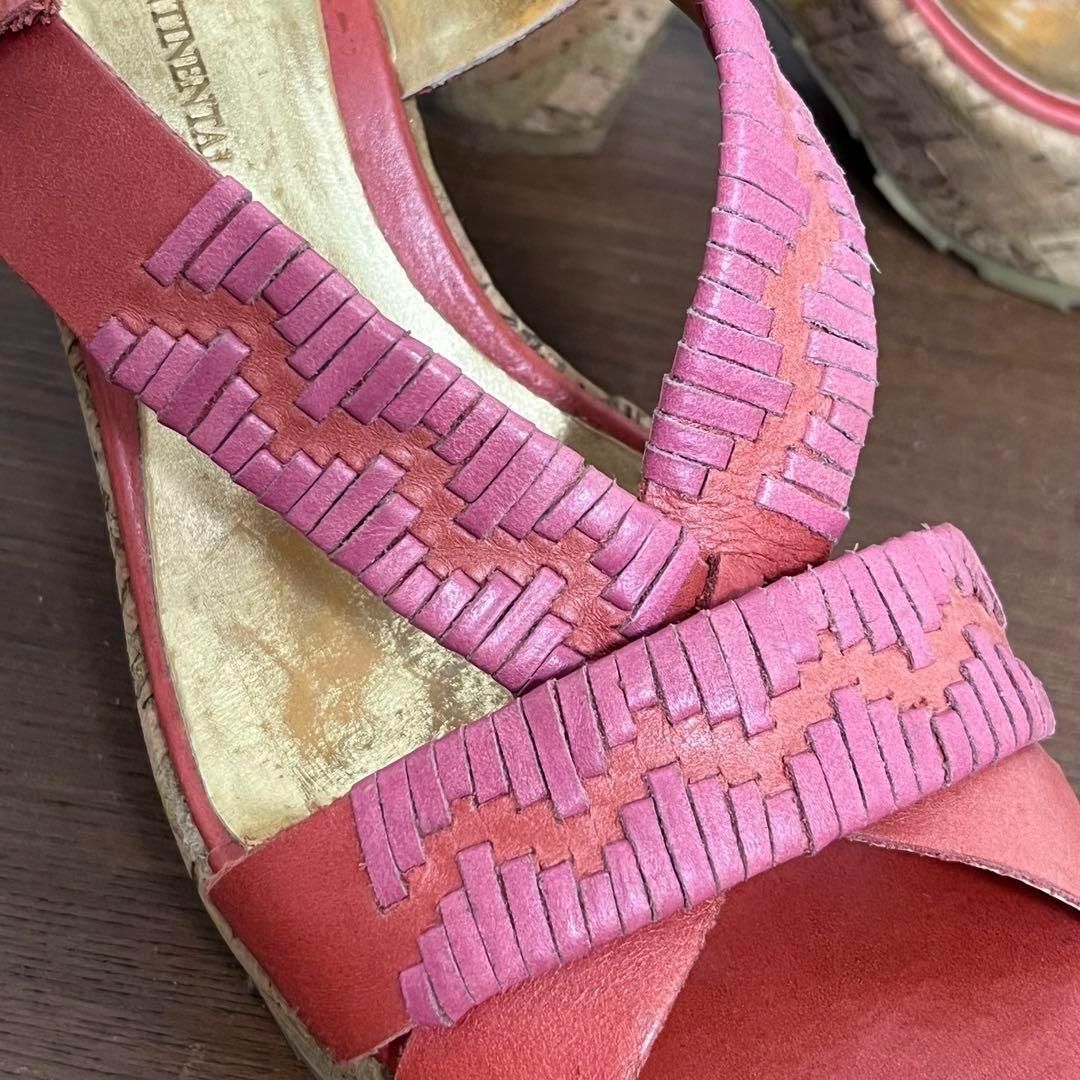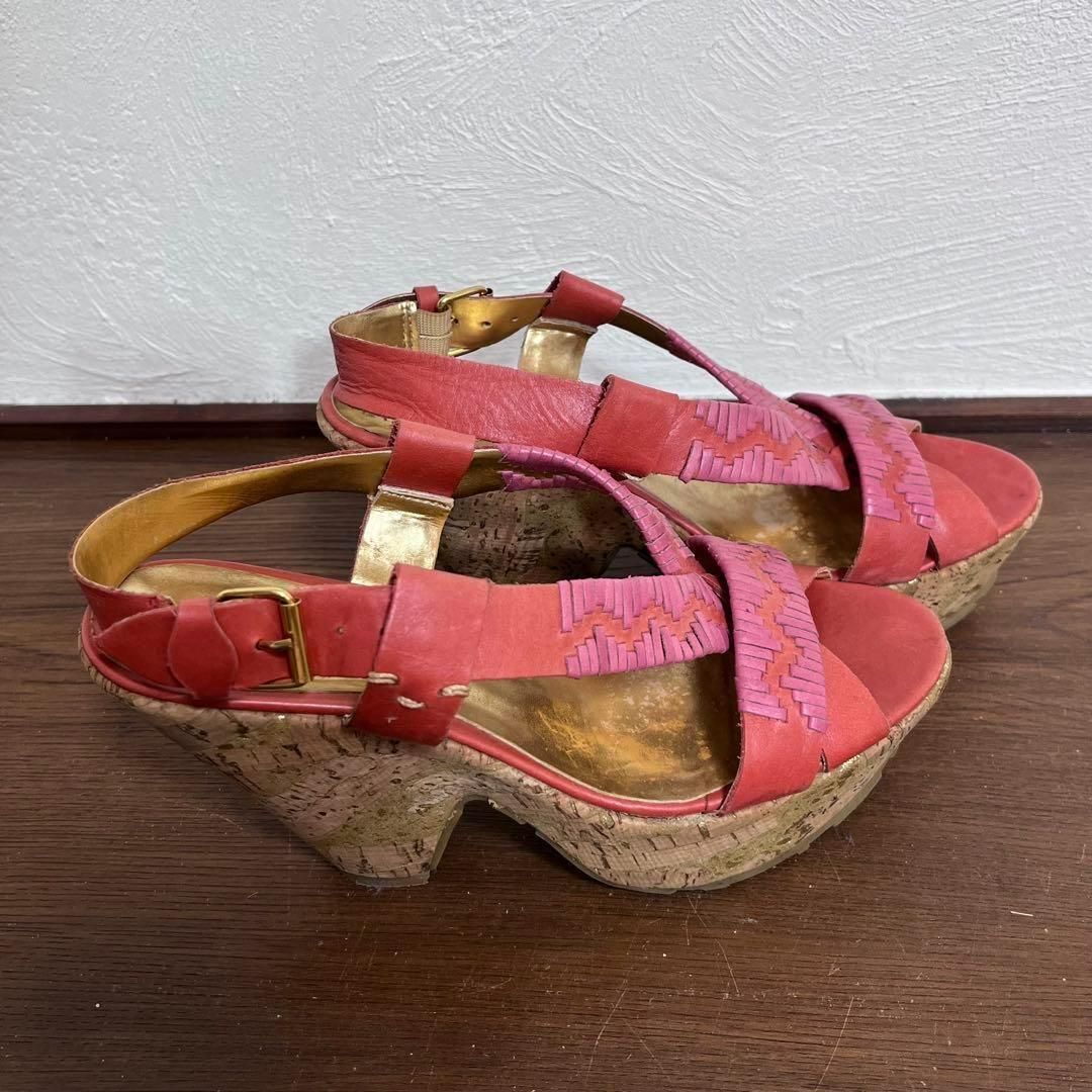 本革 柔らかレザー オレンジ ピンク 厚底サンダル レディース