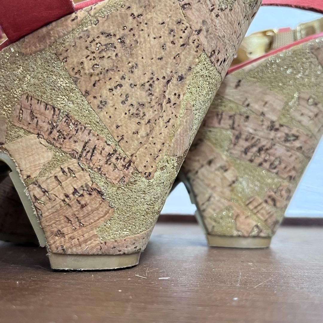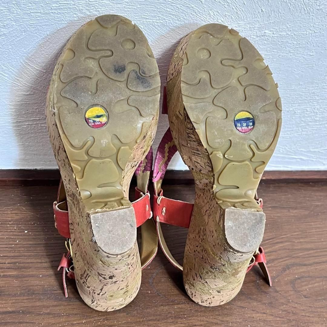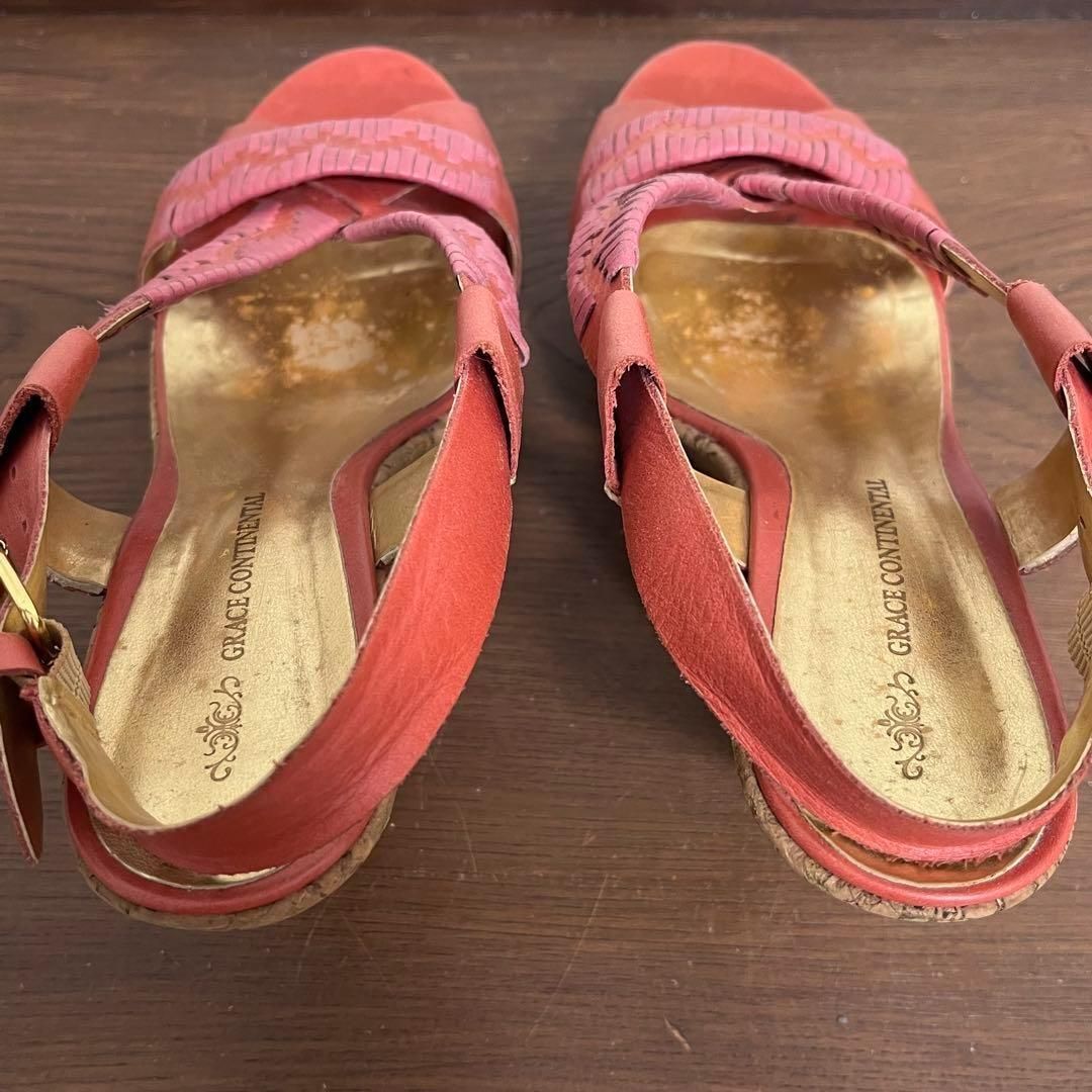 抑えめのオレンジにピンクのレザー刺繍がめちゃくちゃキュートなとっても素敵な厚底サンダルです☆