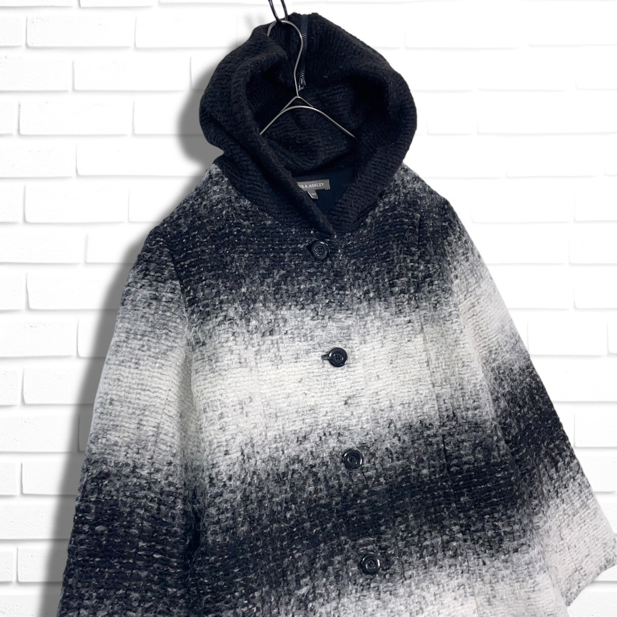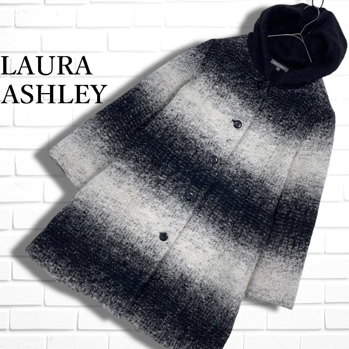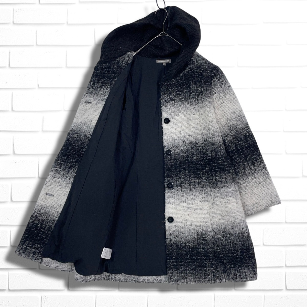 ◆良品◆ LAURA ASHLEY ローラアシュレイ ウール ニット フーディー コート 白 × 黒 ホワイト ブラック レディース 9 送料無料 0975J◇